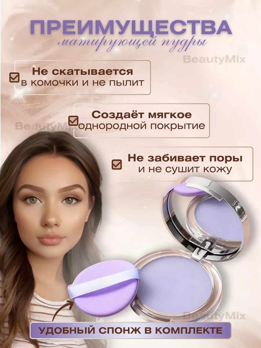 Эксклюзивная матирующая пудра с уникальной восковой текстурой не только придает вашему макияжу совершенный матовый финиш, но и интенсивно борется с жирным блеском, оставляя вашу кожу великолепно матовой и свежей на протяжении всего дня. Откройте для себя революционное решение в мире красоты с нашей пудрой для лица с текстурой воска – незаменимый продукт в арсенале каждой современной женщины. Наша уникальная формула эффективно абсорбирует излишки секреции сальных желез, делая её идеальным решением для жирной и комбинированной кожи. Но это не всё – она также подходит для всех типов кожи, включая чувствительную и проблемную, благодаря своей мягкой и безвредной составляющей. С легкой гелевой текстурой наша пудра невероятно легко наносится, обеспечивая равномерное покрытие без эффекта маски. Она не создает пятен или полос, оставляя вашу кожу естественно сияющей. Используйте её как праймер для минимизации пор до нанесения тонального средства или как завершающий штрих для фиксации макияжа. Её компактный размер идеален для косметички, позволяя легко поправить макияж в любое время. Наша формула обеспечивает натуральный вид и ощущение, не подчеркивая морщинки или сухость кожи. Она выравнивает тон, скрывает мелкие недостатки и делает поры практически невидимыми, словно после профессионального фотошопа. Стильный дизайн и сиреневый оттенок упаковки добавляют изысканности и элегантности. В комплект входит зеркальце и мягкий спонж для удобства применения. Наша пудра не содержит талька и крахмала, предлагая прозрачную и бесцветную формулу, которая не оставляет желтого оттенка на коже. Откройте для себя идеальное сочетание качества, удобства и красоты с Matte Candy Bella Powder – ваш секрет совершенства, который должен быть в каждой косметичке!