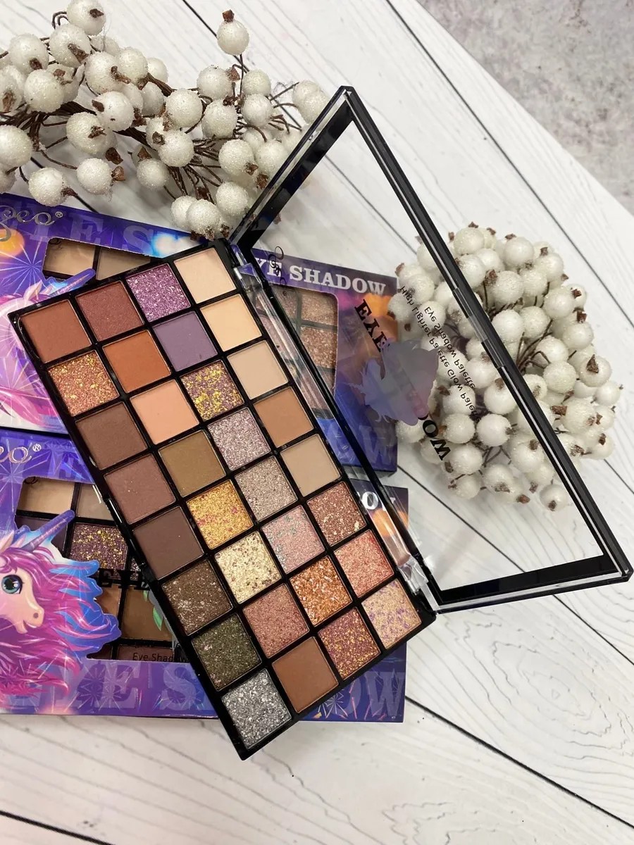 Eyeshadow - This eyeshadow palette includes 32 shades. A perfectly coordinated combination of eyeshadow shades will allow you to experiment with makeup and create unique looks every day. Whether you're creating a subtle, natural look or a bold statement, this vibrant eyeshadow palette will be your indispensable companion. Our eyeshadow palette features both subtle shades for a natural look and vibrant colors that will help you create a look for any occasion. These eyeshadows are highly pigmented, apply comfortably, and don't flake or crease. Our long-lasting eyeshadows make the perfect gift for any occasion. This nude eyeshadow palette is the perfect solution for those who love to experiment and try out different looks. Women / New Year's Gifts for Women / Beauty / For a Friend This eyeshadow palette is ideal for all skin types, creating a feeling of lightness and comfort. The soft texture, which contains color-rich pigments and micronized mica, adds radiance, while the binding agent ensures optimal wear.