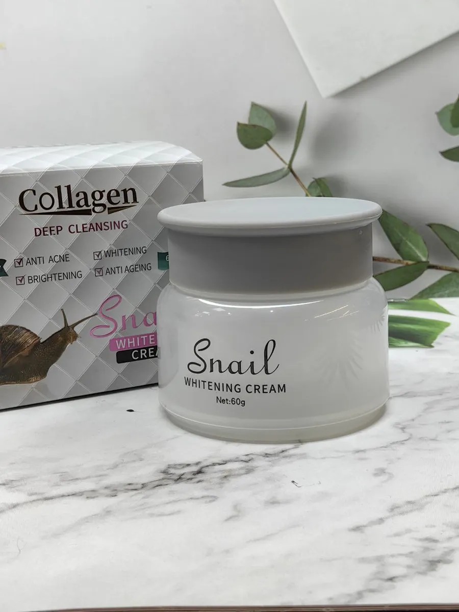 Коллагеновый крем для лица с экстрактом улитки — идеальный уход для молодости и сияния кожи.Откройте для себя крем для лица с коллагеном и экстрактом улитки, который не только увлажнит, но и эффективно борется с возрастными изменениями. Этот крем работает на выравнивание тона кожи, осветление пигментации и поддержание молодости. Выравнивание и отбеливание кожи: Крем активно борется с пигментацией, улучшая тон кожи и придавая ей сияние. Экстракт улитки и коллаген помогают контролировать выработку меланина и выравнивают поверхность. Коллаген и экстракт улитки глубоко увлажняют кожу, поддерживая оптимальный уровень влаги и укрепляя её защитные функции.