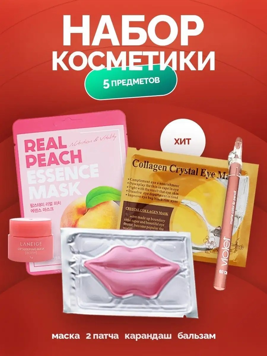 Подарочный набор для женщин включает корейскую тканевую маску патчи в форме губ гидрогелевые патчи для глаз бальзам маску для губ и карандаш для губ. Такая коробочка станет замечательным презентом для мамы сестры девушки подруги.