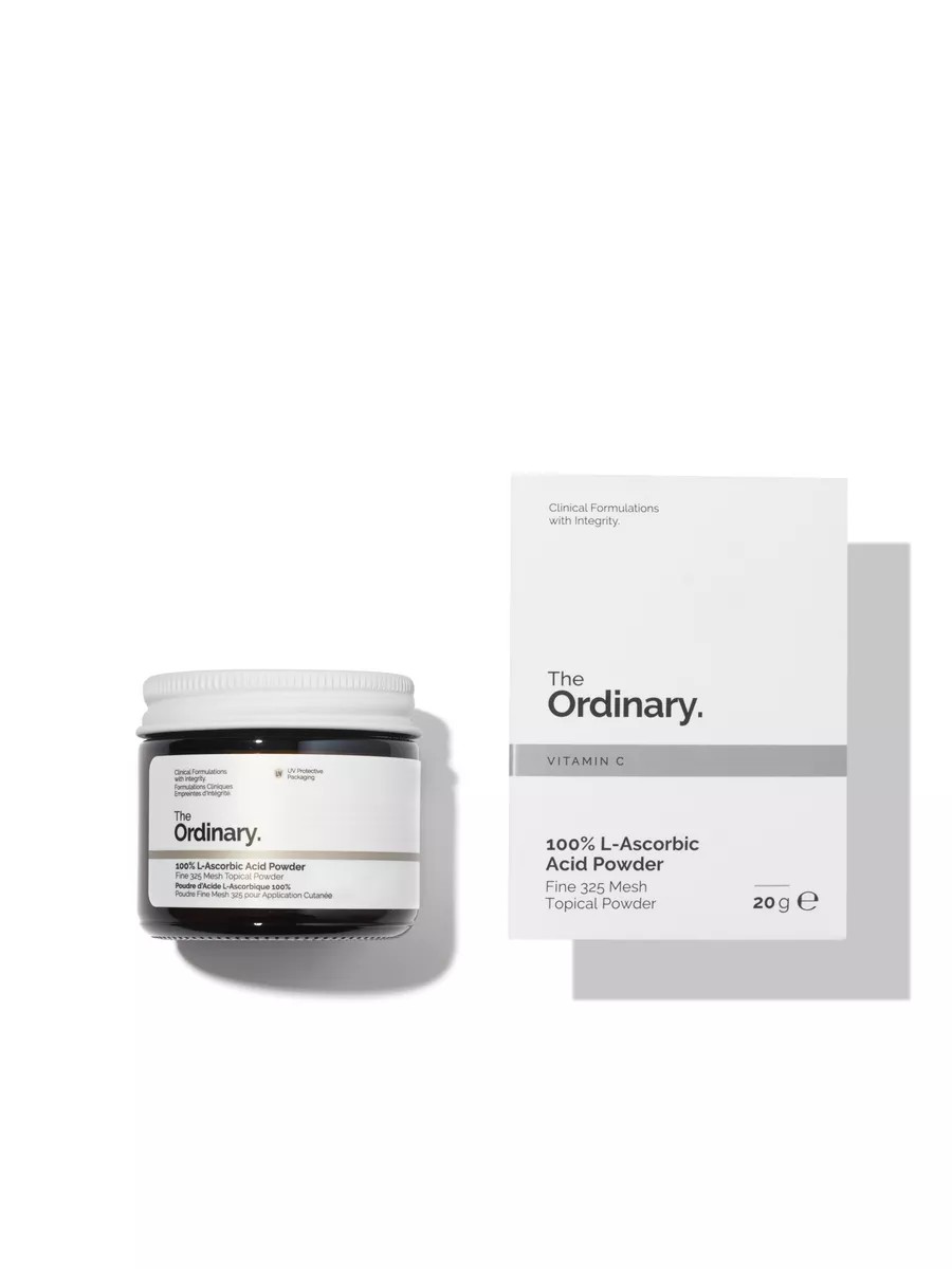 The Ordinary 100% Niacinamide Powder, a multifunctional powder made with 100% niacinamide, offers a wide range of benefits: it evens out skin tone, lightens pigmentation and age spots, regulates sebaceous glands and normalizes the water-oil balance, helps shrink enlarged pores, slows the aging process, and restores tissue integrity and smoothes. The product is based on one of the most well-known and effective ingredients: vitamin B3, also known as niacinamide. In addition to the above functions, it increases ceramide synthesis, eliminates dryness, tightness, and flaking. It slows the delivery of melanin to the epidermis, preventing the formation of age spots. It reduces the skin's sensitivity to external irritants, promotes collagen production, and increases tissue density. The powder format is the most convenient to use, allowing you to easily adjust the component concentration in your skincare products to suit your individual needs. Therefore, the powder can be mixed with any non-compatible water-based products. It is not recommended to use it in the same treatment with acidic forms of vitamin C (L-Ascorbic Acid, Ethylated L-Ascorbic Acid) and active acids.