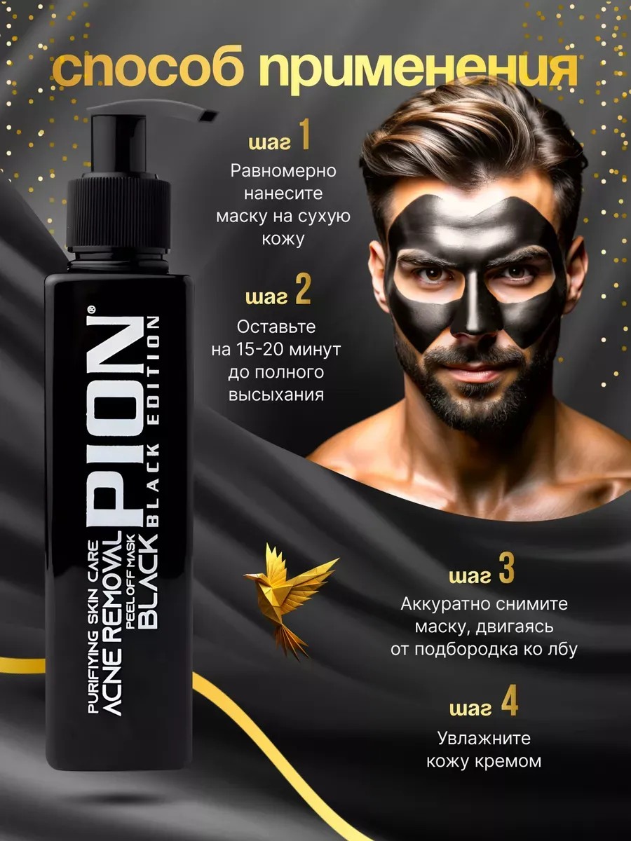 Откройте мир красоты с отшелушивающей маской для лица от турецкого бренда профессиональной косметики PION BLACK EDITION. Маска от черных точек — идеальное средство для глубокого очищения пор на лице, от черных точек на носу, от прыщей. Бережно удаляет черные точки и загрязнения, оставляя поры чистыми. С ее помощью вы легко достигнете эффекта лифтинга, видимо подтягивая и улучшая контур лица. Кроме того, маска обладает свойствами пленки, которая при снятии помогает мягко удалять мертвые клетки кожи, обеспечивая эффект мягкого пилинга. Это способствует обновлению кожи, улучшению её текстуры и повышению уровня гидратации. Помимо увлажняющих и очищающих свойств, черная маска от черных точек обладает отбеливающим эффектом, который помогает выравнивать тон кожи и придает ей равномерный, свежий вид. Маска для лица очищающая способствует детоксикации кожи, активно борясь с ежедневным воздействием вредных факторов. Благодаря своему составу, маска подходит как для женщин, так и для мужчин, делая ее универсальным решением для домашнего ухода. Используйте маску регулярно раз в неделю, чтобы поддерживать кожу в идеальном состоянии. Продукт разработан таким образом, чтобы не только сужать поры после чистки, но и предотвращать их повторное расширение, обеспечивая длительный эффект чистой и гладкой кожи. Маска пленка для лица не только улучшит внешний вид вашей кожи, но и окажет положительное воздействие на её здоровье, стимулируя обновление клеток и укрепляя защитный барьер. Это делает продукт подходящим для всех типов кожи, включая чувствительную. Включив маску пленку для лица в Ваш еженедельный ритуал ухода за кожей, Вы заметите, как Ваша кожа станет более мягкой, чистой и свежей. СПОСОБ ПРИМЕНЕНИЯ: нанесите маску на лицо не очень толстым слоем, избегая области вокруг глаз, губы и брови. Оставьте маску на 15-20 минут до высыхания. Снимите, аккуратно отдирая образовавшуюся плёнку. Чёрную маску-плёнку для очищения пор можно использовать не чаще 1–2 раз в неделю.