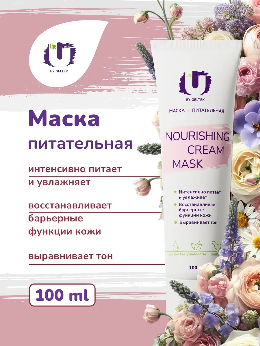 The Nourishing Cream Mask moisturizing cream mask eliminates tightness, flaking, and irritation, especially on chapped and dehydrated skin, as well as during retinol use and during recovery from peels. Suitable for all skin types for intensive nourishment and hydration, it is especially beneficial for dry skin of the face and neck. It can also be used as an overnight mask. D-panthenol, allantoin, and bisabolol promote regeneration and have a pronounced soothing effect. A complex of natural antioxidants (blackberry, strawberry, raspberry, cranberry, blueberry extracts, and vitamin E) evens out skin tone, improves firmness and elasticity, while ylang-ylang essential oil relieves emotional stress and promotes normal sleep. Directions: Apply to cleansed skin after washing and toning for 15-20 minutes, then remove any remaining residue with a damp compress (soaked in water and wrung out with a towel or disposable napkin). To use as an overnight mask, apply a thick layer to the face and neck for 15 minutes. Remove excess mask with a dry tissue, leaving a thin layer. Wash with cleanser in the morning. Can be used for a short self-massage of the face and neck. Use 1-2 times a week or more often if needed. The U professional facial cosmetics are suitable for home and salon use and will add to your list of favorite facial care products.