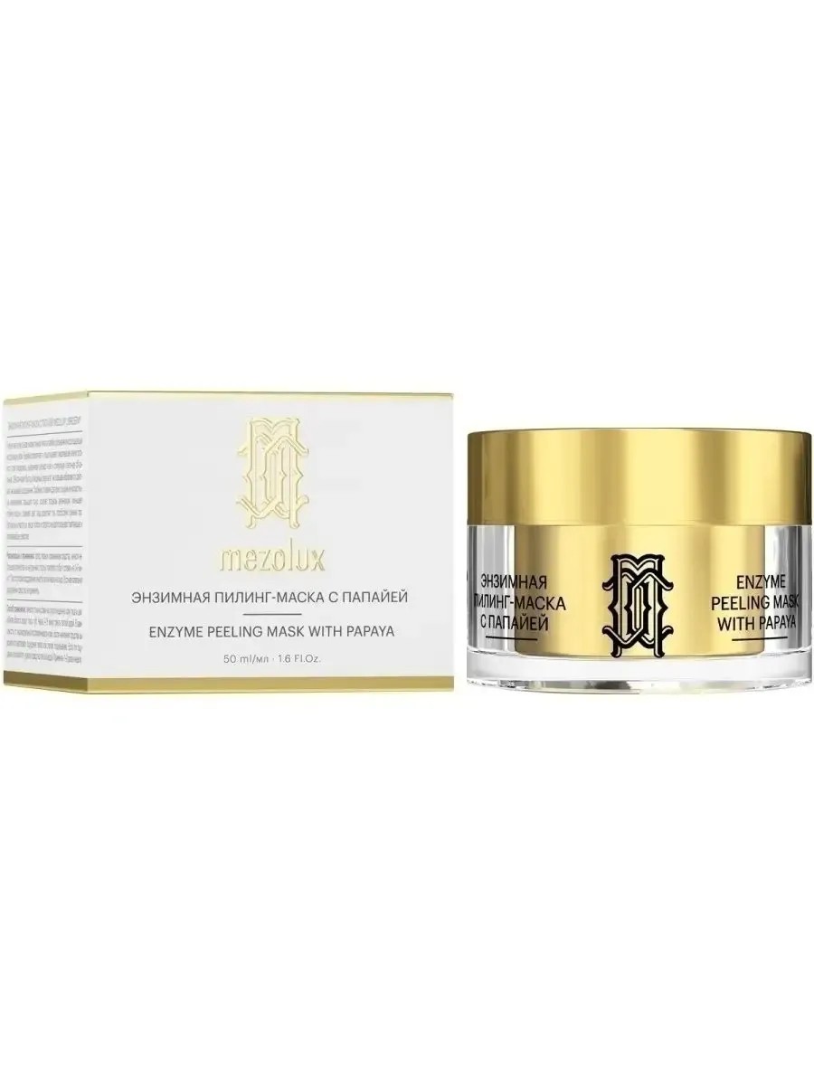 LIBREDERM /Либридерм MEZOLUX энзимная пилинг-маска с папайей 50 мл. Маска Мезолюкс на основе энзима сочной мякоти папайи предназначена для щадящей эксфолиации кожи. Благодаря папаину и комплексу кератолитического действия она бережно и эффективно размягчает и отшелушивает омертвевшие клетки эпидермиса с поверхности кожи, выравнивает ее рельеф, способствует уменьшению глубины морщин, усилению процессов регенерации и омоложению. Пилинг очень мягко и глубоко очищает кожу, не оказывая абразивного эффекта, что особенно важно для чувствительной и возрастной кожи. Комплекс масел оказывают смягчающее, увлажняющее и успокаивающее действие. Способ применения: нанести тонким слоем на сухую очищенную кожу лица и шеи, избегая области вокруг глаз и губ. Оставить воздействовать в течение 7-15 минут, затем смыть теплой водой. Применять 1-2 раза в неделю в зависимости от состояния кожи. Не наносить на поврежденную, раздраженную кожу.
