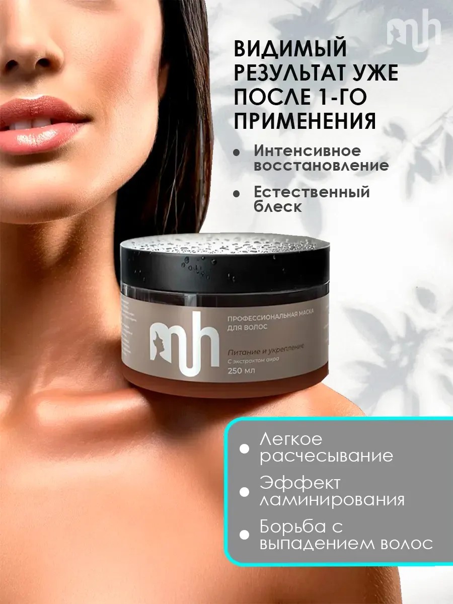 Mh- профессиональная маска - идеальное решение для глубокого увлажнения и укрепления и восстановления структуры волос. Формула тщательно разработана с натуральным составом, содержащим большой процент активных компонентов. Экстракт аира, протеины шелка и гидролизованный кератин работают вместе для достижения максимальных результатов. Маска имеет накопительный эффект, благодаря чему волосы становятся более здоровыми после каждого применения. Д-пантенол и витамин Е обеспечивают защиту от выпадения и благоприятно влияют на состояние кожи головы. Это средство эффективно справляется с перхотью и предотвращает проблемы с жирной кожей головы. С помощью формулы удается питать волосы на молекулярном уровне. Это позволяет улучшить общую текстуру прядей, что приводит к их разглаживанию и устранению ломких, секущихся кончиков. Здоровый блеск становится видимым уже после первого использования, что особенно радует обладательниц блонда и нарощенных волос. Подходит всем типам волос, включая те, которые подвергались процедурам нанопластики кератина и ботокса. Маска абсолютно безопасна для чувствительной кожи головы, поэтому её могут использовать все желающие без риска негативных последствий. Рекомендуется применять это восстанавливающее средство дважды в неделю для достижения наилучших результатов. Оно не только улучшает внешний вид локонов, но также заботится о здоровье луковиц стержня волоса. Плюс ко всему, продукт станет отличным подарком маме или девушке на праздник – 14 февраля или день рождения. С помощью данной маски Ваши волосы станут шелковистыми и ухоженными благодаря мощному сочетанию активных веществ. Способность спасать даже самые проблемные пряди делает этот уход незаменимым в косметичке каждой женщины.