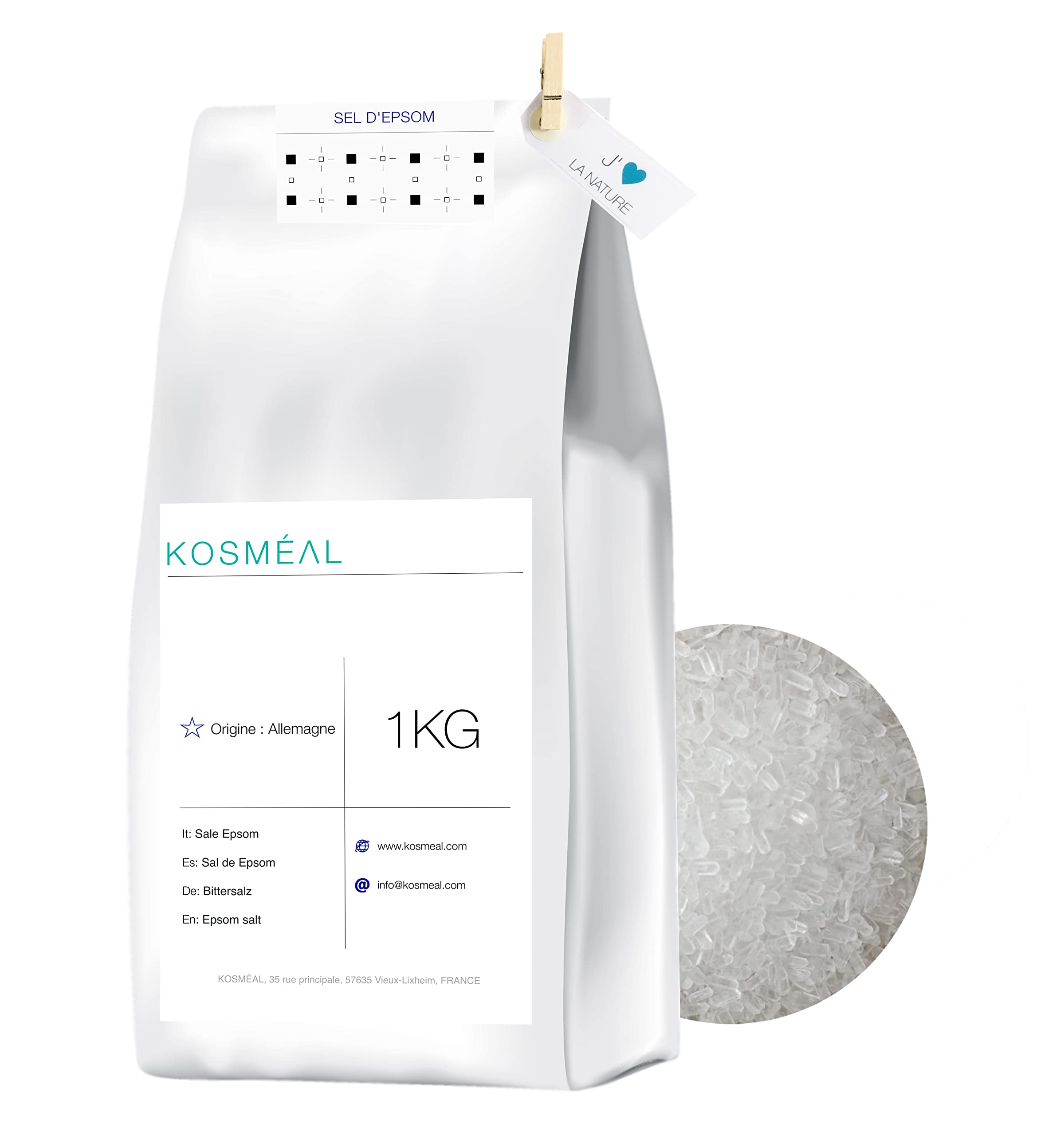 EPSOM SALT USES AND SIDE EFFECTS – relieves stress and relaxes the body – relieves cramps and muscle spasms – helps properly control muscles and nerves – protects against hardening of eyebrows and blood clots – promotes constipation – eliminates toxins from the body.EPSOM SALT USES AND BENEFITS - Relieves stress and relaxes the body - Relieves pain and muscle cramps - Helps muscles and nerves function properly - Helps prevent hardening of arteries and blood clots - Relieves constipation - Eliminates toxins from the body.Epsomzouten - Magnesiumsulfaat - 1KG - Ecologische witte kraftverpakking EPSOM SALT GEBRUIKEN EN BIJWERKINGEN – verlicht stress en ontspant het lichaam – verlicht krampen en spierkrampen – helpt spieren en zenuwen correct te bedienen – beschermt tegen verharding van wenkbrauwen en bloeddoeken – bevordert verstopping – elimineert gifstoffen van het lichaam.EPSOM SALT GEBRUIK EN BENEFITS - Verlicht stress en ontspant het lichaam - Verlicht pijn en spierkrampen - Helpt spieren en zenuwen goed te functioneren - Helpt verharding van slagaders en bloedstolsels te voorkomen - Verlicht constipatie - Elimineert gifstoffen uit het lichaam.