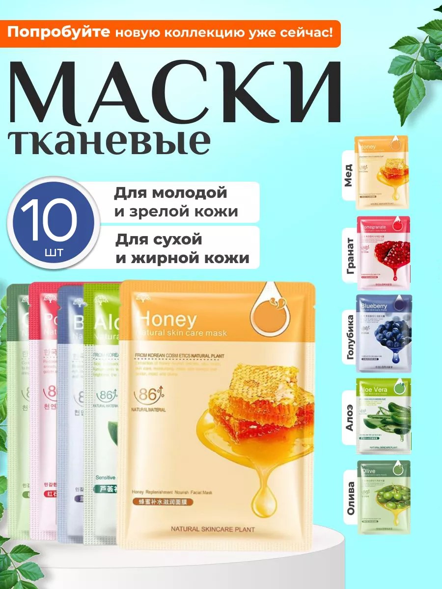 Маска для лица тканевая набор 10 шт – это профессиональное уходовое средство для лица, созданное специально для дам, стремящихся подарить своей коже молодость и красоту. Набор содержит 10 штук, каждая из которых специально разработана для решения определенных проблем кожи. Благодаря этому, вы сможете самостоятельно выбрать подходящее средство для вашего ухода и получить наибольшую пользу от процедуры. Они нежно и эффективно ухаживают за вашей кожей, обеспечивая увлажнение, питание и омолаживающий эффект. В составе содержатся компоненты, признанные экспертами по уходу за кожей – гиалуроновая кислота, коллаген, витамины и улиточный экстракт. Они подходят для всех типов кожи и возрастов. Благодаря своей мягкости и гипоаллергенной формуле, они не вызывают раздражения и подходят даже для самой чувствительной кожи. Будьте уверены, что ваша кожа получит все необходимые вещества для её увлажнения, питания и омоложения, вне зависимости от её особенностей. В наборе вы найдете не только увлажняющие, но и огромное количество других масок разного действия. Защитная, против пигментации, против морщин, против прыщей – все они предназначены для решения конкретных проблем вашей кожи, вне зависимости от её типу и состояния. Масочки для лица – неотъемлемая часть уходовой рутины каждой женщины, стремящейся поддерживать свою кожу в идеальном состоянии. Набор косметических, защитных масок для лица – это профессиональное уходовое средство. Увлажняющая, богатая витаминами питающая маска, уменьшает потерю влаги, делает кожу лица более нежной и гладкой. Маски восстанавливают, повышают эластичность, выравнивают рельеф и разглаживают. Избавляет кожу от сухости и осуществляет защиту от токсинов. Маски борются с несовершенствами кожи, мимическими морщинам и дряблостью. Увлажняющая маска оказывают лифтинг-эффект и выравнивают тон лица. Восстанавливает кожу после рабочего дня и убирает следы усталости, против синяков под глазами и неровного цвета кожи.