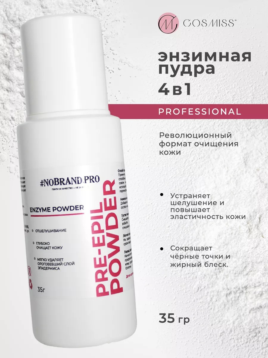 The Russian brand COSMISS offers professional products for sugaring and hair removal at competitive prices. Our in-house production and state-of-the-art technology ensure quality meets the highest standards. With us, the procedure is gentle, quick, and completely painless. If you need a consultation, please leave a question in the "Questions" section of the , and we will promptly answer your questions. The 4-in-1 cleansing powder is designed to beautify your skin and combat imperfections. It can be used as a gentle milk, a light scrub, a rich foam, or before your favorite hair removal and sugaring procedures. The Enzyme Cleansing Powder performs essential functions: it relieves inflammation, exfoliates, evens out skin tone, stimulates cell renewal, reduces pigmentation, combats acne, normalizes sebaceous gland function, improves complexion, and deeply cleanses. This Enzyme Cleansing Powder is designed for gentle yet thorough cleansing of the face and body. Because enzyme face and body powders absorb impurities so well, they are suitable for makeup removal and as a facial scrub. The main ingredient in enzyme powders is papain, which is derived from papaya. It removes dead skin cells from the epidermis and promotes exfoliation. The powder is also used as an enzyme mask and as a treatment for acne on the body and face. Enzyme powders are considered an excellent remedy for ingrown hairs (enzyme powder for ingrown hairs), which is why they are used for prevention after hair removal and sugaring. Facial and body skin care with enzyme cleansing powders (enzymes) will be simple and gentle. Enzyme peeling has no contraindications. Directions for use are included in the photos for each application. Professional cosmetics with care for our beloved customers, the KOSMISS brand team.