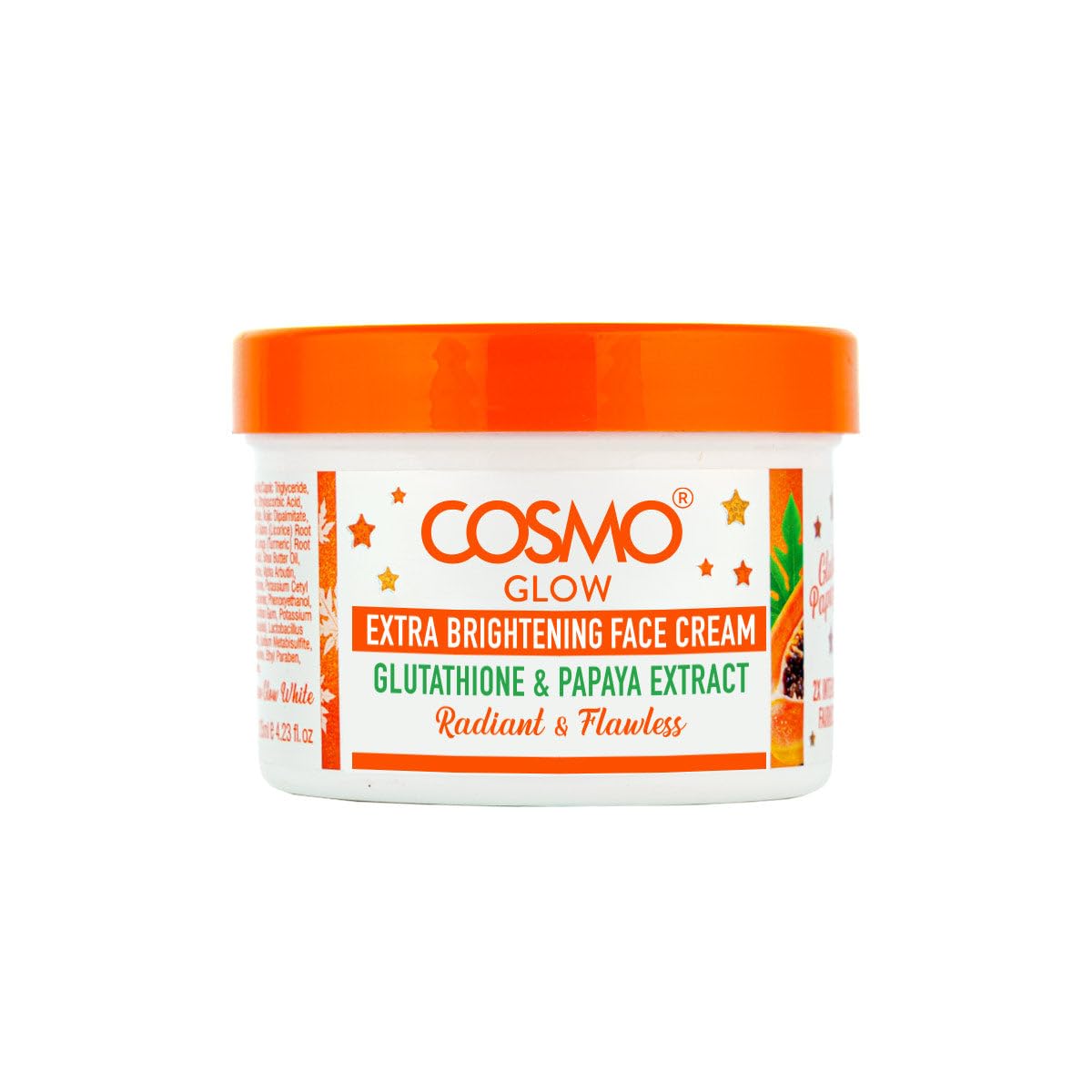 Cosmo Glow Skin Care Gluta Papaya Extra Brightening Face Cream 125ml/4.22fl.oz, Made With Glutathione & Papaya, Moisturizer For Women & Men, Day & Night Face Cream, Ultra Rich, Daily Moisturizers