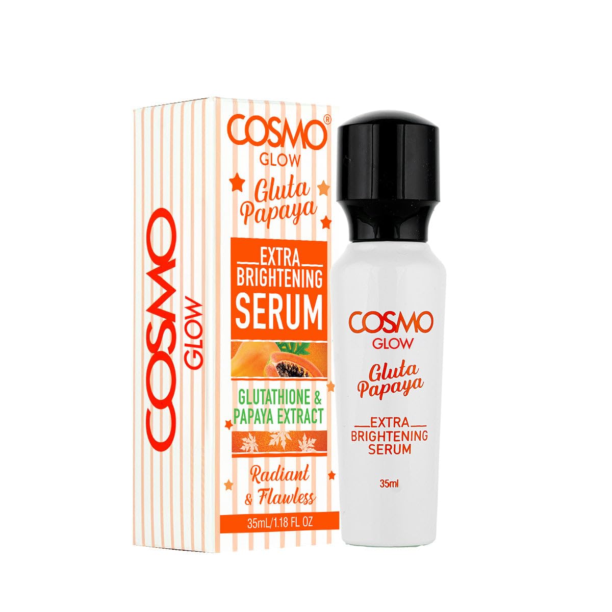 Cosmo Glow Skin Care Gluta Papaya Extra Brightening Serum 35ml/1.18 fl.oz, Glutathione & Papaya Extract, Radiant, Flawless, Non Greasy Formula, Skin Treatment, Face & Body Care, All Skin Types