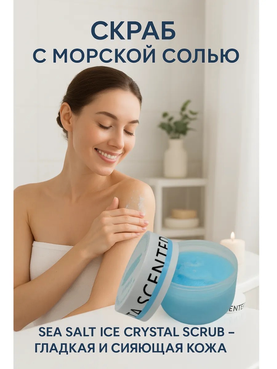 Скраб с морской солью Sea Salt Ice Crystal Scrub — эффективное средство для ухода за кожей тела. Голубая нежная текстура бережно очищает, освежает и придаёт коже гладкость уже после первого применения.