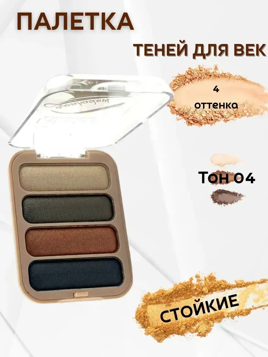 Палетка теней для век с насыщенными оттенками создана для тех, кто любит создавать красивые образы. В каждой палетке имеется 4 насыщенных оттенков, которые помогут вам создать любой образ, начиная от дневного макияжа до вечернего. Цветная палетка с розовым глиттером дополнена яркими и насыщенными оттенками. нюдовая палетка содержит в себе более приглушенные и нежные оттенки, которые идеально подойдут для создания романтического образа. Дополнительный глиттер придаст вашему макияжу более эффектный и яркий вид. Каждая палетка теней содержит только высококачественные тени, которые легко наносятся на кожу и имеют длительную стойкость.