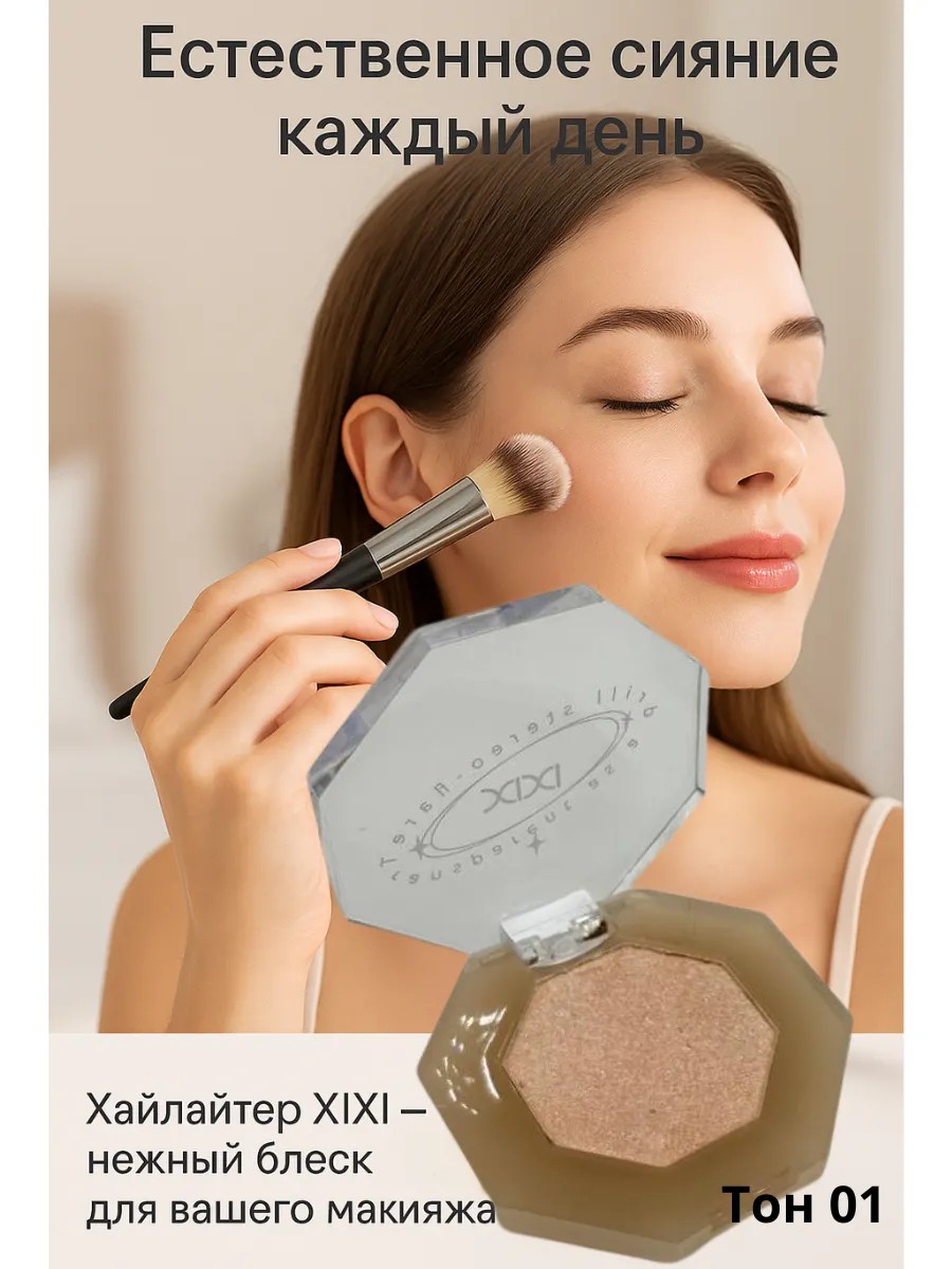 highlighter XIXI, face highlighter, radiant highlighter, pink highlighter, highlighter for makeup, compact highlighter, highlighter for cheekbones, peach highlighter, highlighter with shimmer, cosmetics for face makeup.