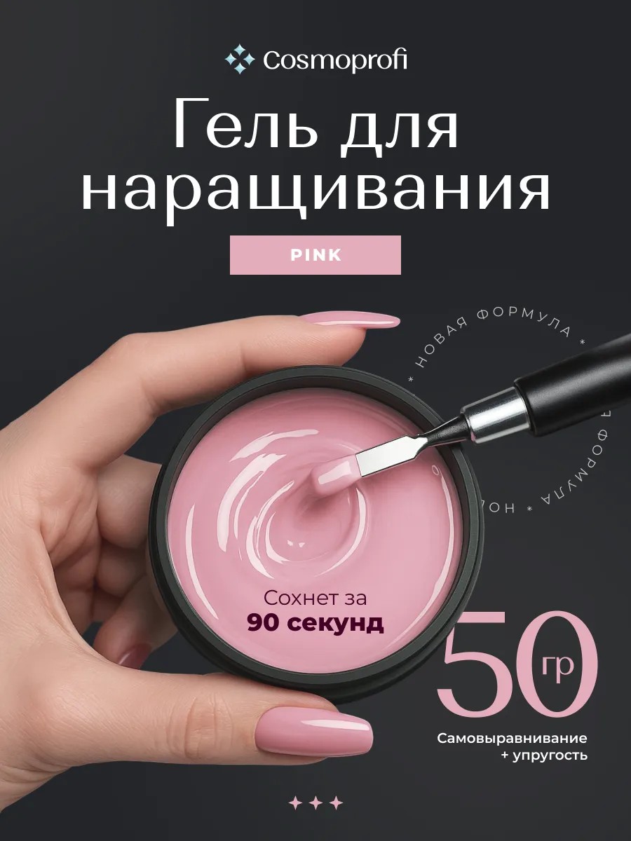 Гель для наращивания и моделирования ногтей Pink средней вязкости бренда Cosmoprofi объемом 50 грамм.