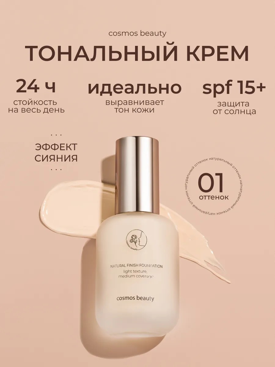| Полное наименование товара | Тональный крем для лица, матирующий, увлажняющий, выравнивающий ,с дозатором, тон 01 |