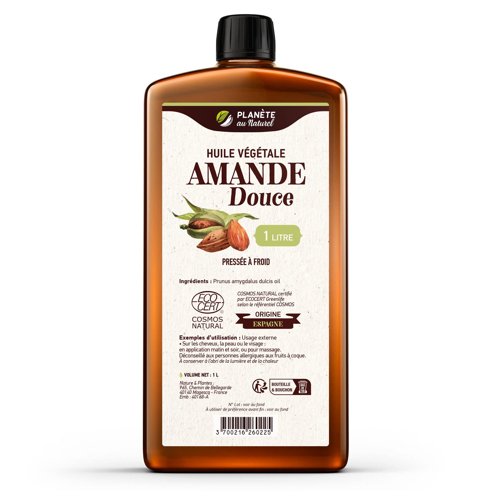 ✓ On the face: after cleansing the skin morning and evening. ✓ On the skin: massage in morning and evening. ✓ On the hair: as a treatment before shampooing. Cold pressed. ? Sweet Almond Vegetable Oil certified Cosmos Natural.✓ Sur le visage : après nettoyage de la peau matin et soir. ✓ Sur la peau : en massage matin et soir,. ✓ Sur les cheveux : en soin avant le shampoing,. Pression à froid. ? Huile Végétale d'Amande Douce certifié Cosmos Natural.