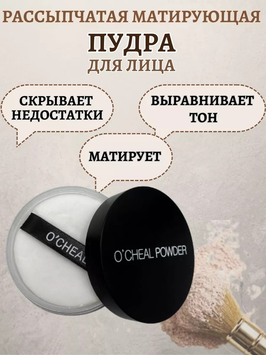 Рассыпчатая пудра O'CHEAL FACE POWDER — олицетворяет легкость, нежность, волшебство! Матирующая пудра станет твоим финальным штрихом в макияже! Невесомая минеральная пудра с антиоксидантами и шелковой текстурой завершит любой макияж. Благодаря ультрамягкой текстуре продукт придает лицу свежий вид и сияющий цвет одним взмахом кисточки. Светоотражающая рассыпчатая пудра для лица O'cheal Face Powder скрывает все дефекты вашей кожи, даря макияжу изысканную утонченность. Абсорбирует излишний блеск. Белая прозрачная пудра осветляет кожу, нежная структура легко растушевывается, даря коже эффект сияния. Рассыпчатая пудра выравнивает тон лица и прекрасно убирает жирный блеск, покрывая кожу нежно и незаметно. Рассыпчатая пудра для лица хорошо ложится и создает матирующий эффект. Разглаживает кожу, не оставляет ощущения сухости. Отлично фиксирует макияж, делает кожу гладкой и бархатной. Тональный крем является прекрасным средством для завершения макияжа. Минеральная пудра подходит для любого типа цвета и кожи. Идеально подстраиваясь под тон кожи, устраняет ее недостатки и не забивает поры. Не стягивает и не сушит. Пудра распределяется прозрачным тонким слоем и не выбеливает лицо, что делает её абсолютно универсальной: пудра подходит для загорелой кожи летом и для светлой кожи зимой, сочетается с любым оттенком тонального крема, подходит для любой кожи и любой внешности. Основной действующий компонент: Коалин отбеливает лицо от пигментации, устраняет любые очаги воспалений, придаёт коже матовость и улучшает состояние жирной кожи. Способ применения: Нанесите необходимое количество пудры на лицо при помощи спонжа. Средство может использоваться в качестве завершающего этапа при нанесении макияжа или точечно для уменьшения несовершенств кожи.