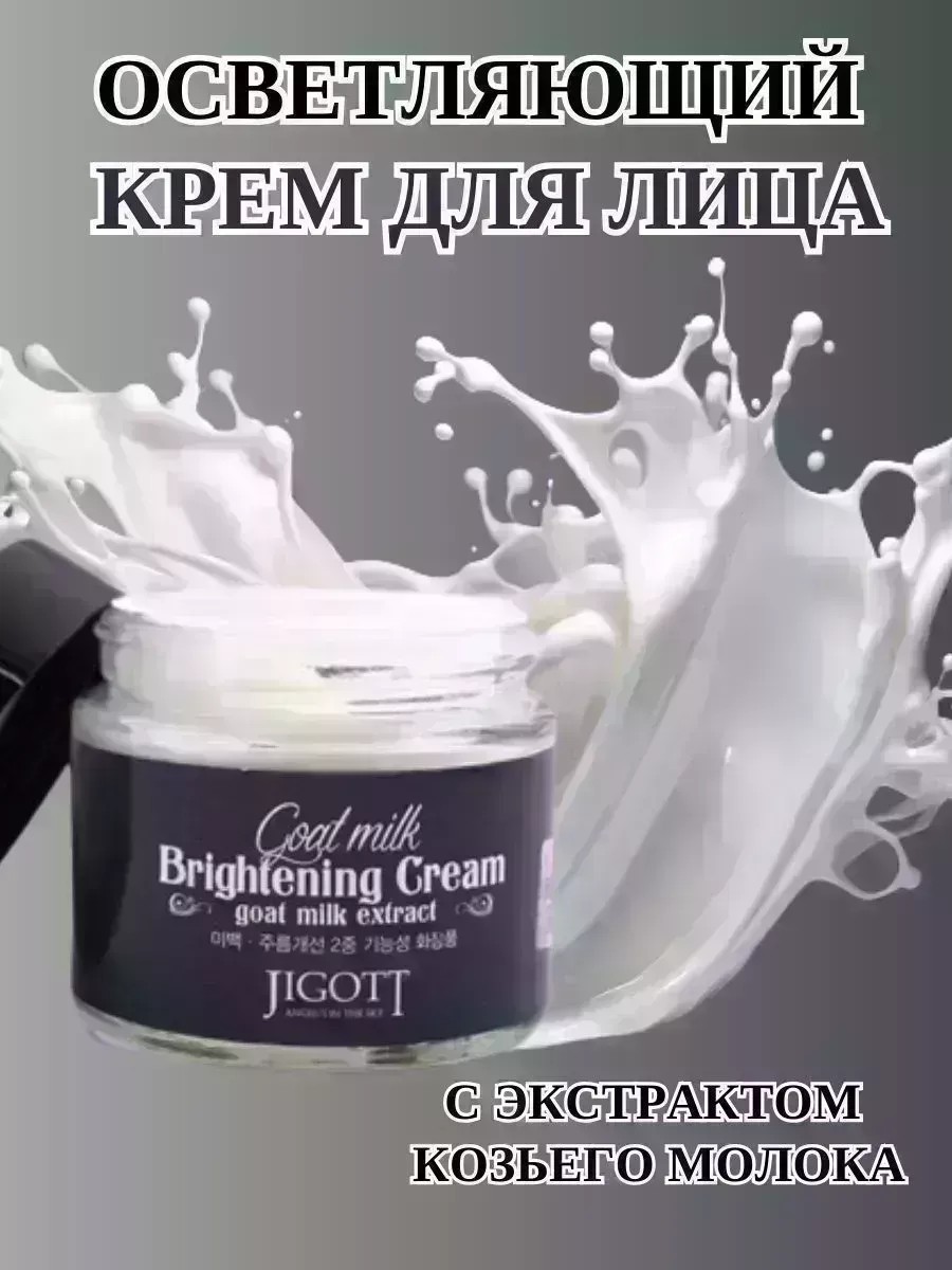 Омолаживающий крем с козьим молоком Jigott Goat Milk Brightening Cream возвращает коже упругость и тонус, разглаживает рельеф, делает кожу шелковистой и свежей. Он увлажняет и питает кожу, насыщает ее витаминами и ценными элементами, дарит коже здоровое сияние и придает отдохнувший вид. В состав входит экстракт козьего молока, он укрепляет иммунитет кожи, оздоравливает микробиом, улучшает защитные функции кожи. Запускает синтез коллагена, уменьшает глубину морщин, борется с дряблостью и провисанием. Также он обладает противовоспалительными и заживляющими свойствами.Увлажняющий крем с активным отбеливающим действием эффективно восстанавливает тусклую, пигментированную и обезвоженную кожу. Крем для лица содержит экстракт ценного молока коз, выращенных на экологически чистых лугах Новой Зеландии. Козье молоко обладает антиоксидантными, антибактериальными, увлажняющими и питательными свойствами. Оно восполняет недостаток питательных веществ, которые необходимы для здоровья и сияния кожи. Кроме того, в состав крема входят активные ингредиенты, которые обеспечивают омолаживающие и восстановительные процессы для кожи лица и шеи (ниацинамид, аллантоин, аденозин).