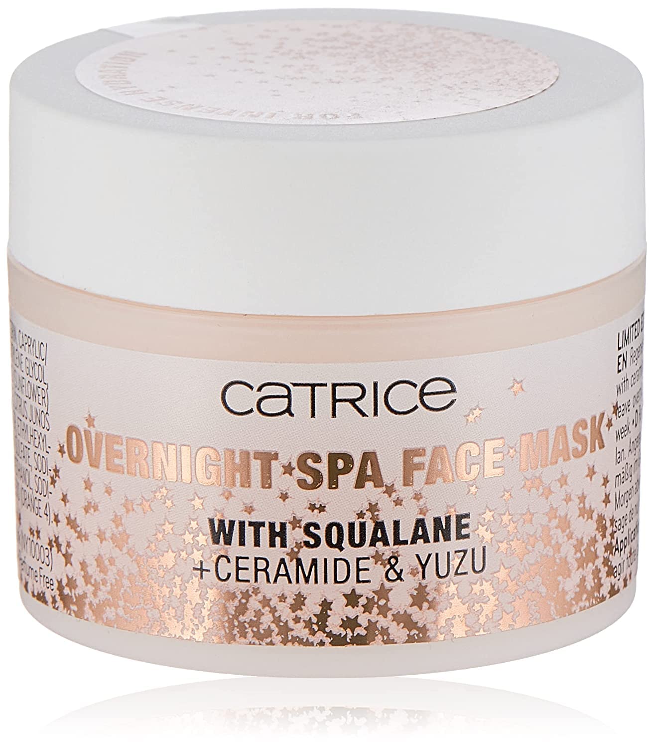 Chillout time – also for the skin. The Overnight Spa Face Mask provides a wellness effect at night. Applied before bed, the Overnight Spa Facial Mask nourishes facial skin with hydrating squalane, refreshing yuzu and skin-protecting ceramide. The result: Visibly restored, nourished skin and a soft glow in the morning. We say no to animal testing. Cosnova is internationally registered with both PETA Germany and PETA with essence and CATRICE. INGREDIENTS INGREDIENTS: AQUA (WATER), GLYCERIN, CAPRYLIC CAPRIC TRIGLYCERIDE, SQUALANE, PENTYLENE GLYCOL, TOCOPHEROL, HELIANTHUS ANNUUS (UNFLOWER) SEED OIL, GLYCERYL STEARATE CITRATE, CITRUS JUNOS PEEL WATER, CER, CAMIDE NG, CARBOMER, ETHYLYLGLYCERINE, SODIUM CHLORIDE, SODIUM SULFATE, SODIUM HYDROXIDE, CITRIC ACID, PHENOXYETHANOL, SODIUM BENZOATE, CI 14700 (RED 4), CI 15510 (orange 4). INSTRUCTIONS FOR USE Use: Apply evenly to the face, leave on overnight and wash off in the morning. Use 2-3 times a week. See moreWe say no to animal testing. Cosnova is listed with essence and CATRICE at both PETA Germany and PETA internationally. For combination skin, for normal skin, for oily skin, for mature skin, for sensitive skin, for dry skin, for impure skin. Visibly restored, cared for skin and a soft glow in the morning. Facial mask for use at night. With squalane, ceramid and yuzuzu. For restored, nourished skin during sleep. Apply before bedtime, the Overnight Spa Face Mask nourishes the facial skin with moisturizing squalane, refreshing yuzu and skin-protecting ceramide. The result. Chillout time – also for the skin. The Overnight Spa Face Mask provides a wellness effect at night.Catrice Holiday Skin Overnight Spa gezichtsmasker, wit, voor de gemengde huid, voor onzuivere huid, ontspannend, rustgevend, verzorgend, met vitaminen, revitaliserend, beschermend, natuurlijk (30 ml) Chillout-time – ook voor de huid. Het Overnight Spa Face Mask zorgt 's nachts voor een wellness-effect. Voor het slapengaan aangebracht, verzorgt het Overnight Spa-gezichtsmasker de gezichtshuid met hydraterende squalan, verfrissende yuzu en huidbeschermende ceramide. Het resultaat: Een zichtbaar herstelde, verzorgde huid en een zachte gloed 's ochtends Wij zeggen nee tegen dierproeven. Cosnova is met essence en CATRICE internationaal geregistreerd bij zowel PETA Duitsland als PETA. INGREDIËNTEN INGREDIENTS: AQUA (WATER), GLYCERIN, CAPRYLIC CAPRIC TRIGLYCERIDE, SQUALANE, PENTYLENE GLYCOL, TOCOPHEROL, HELIANTHUS ANNUUS (UNFLOWER) SEED OIL, GLYCERYL STEARATE CITRATE, CITRUS JUNOS PEEL WATER, CER, CAMIDE NG, CARBOMER, ETHYLYLGLYCERine, SODIUM CHLORIDE, SODIUM SULFATE, SODIUM HYDROXIDE, CITRIC ACID, PHENOXYETHANOL, SODIUM BENZOATE, CI 14700 (RED 4), CI 15510 (oranje 4). GEBRUIKSAANWIJZING Gebruik: Gelijkmatig op het gezicht aanbrengen, 's nachts laten inwerken en 's ochtends afwassen. 2-3 keer per week gebruiken. Meer bekijkenWij zeggen nee tegen dierproeven. Cosnova is met essence en CATRICE zowel bij PETA Duitsland als bij PETA internationaal vermeld. Voor een gemengde huid, voor een normale huid, voor een vettige huid, voor een rijpe huid, voor de gevoelige huid, voor een droge huid, voor een onzuivere huid. Een zichtbaar herstelde, verzorgde huid en een zachte gloed in de ochtend. Gezichtsmasker voor gebruik 's nachts. Met squalan, ceramid en yuzuzu. Voor een herstelde, verzorgde huid tijdens de slaap. Voor het slapengaan aanbrengen, verzorgt het Overnight Spa Face Mask de gezichtshuid met hydraterende squalan, verfrissende yuzu en huidbeschermende ceramide. Het resultaat. Chillout-time – ook voor de huid. Het Overnight Spa Face Mask zorgt 's nachts voor een wellness-effect.