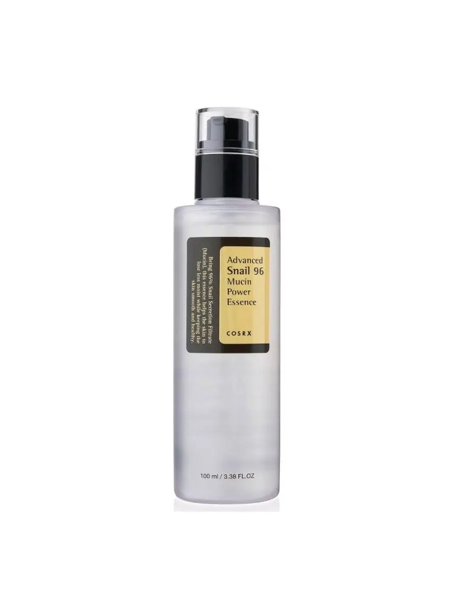 COSRX Advanced Snail 96 Mucin Power Essence, a highly active facial essence with 96% snail mucin, delivers a comprehensive effect on the skin thanks to its high concentration of snail mucin filtrate: