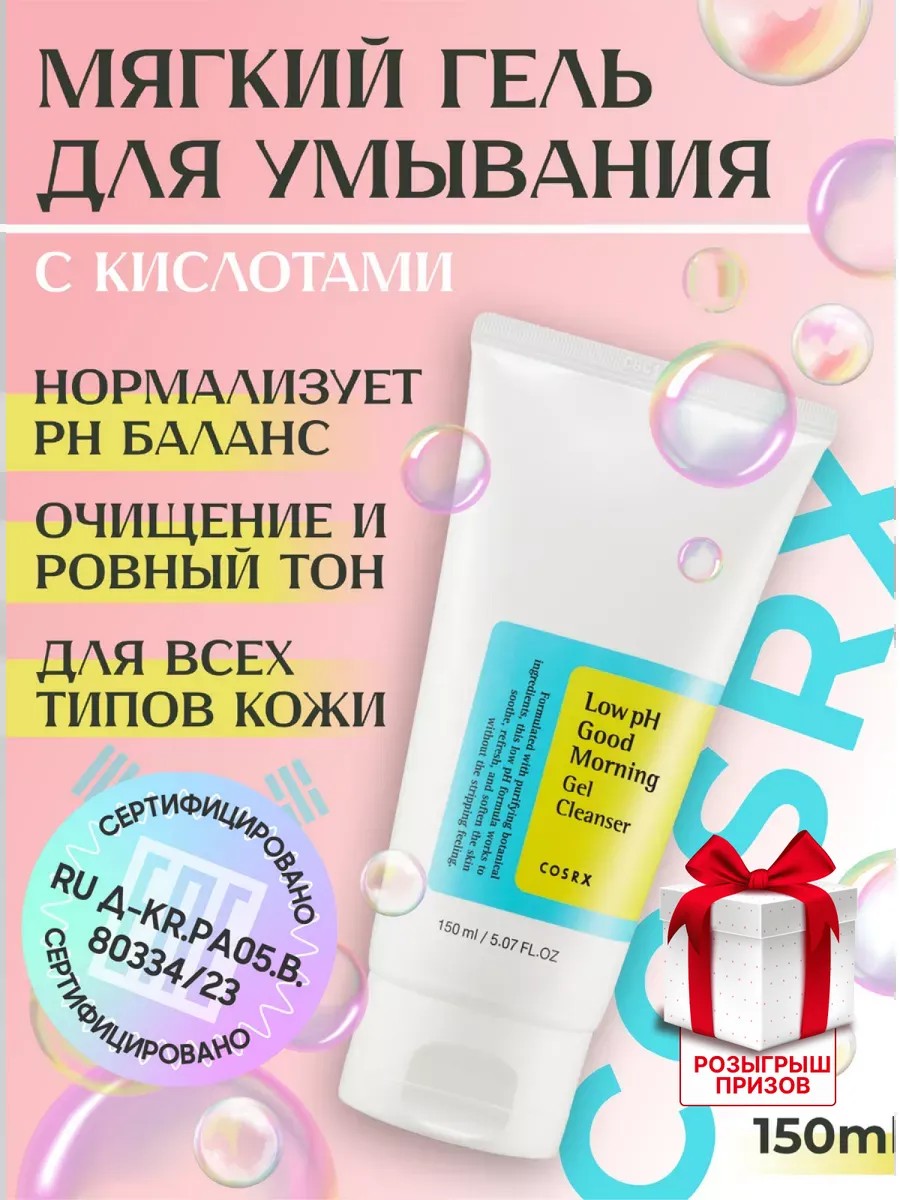 Слабокислотная пенка для умывания Корея COSRX Good Morning Gel Cleanser отлично подходит для утреннего очищения и пробуждения кожи! Умывалка для лица убирает излишки кожного сала, выделяющиеся за ночь, а также ороговевшие клетки. Пенка дает ощущение кристальной чистоты без неприятной жирной пленки, тонизирует кожу и дарит ощущение комфорта на весь день. Средство для умывания лица COSRX подготовит кожу к дальнейшему уходу и нанесению косметики: его можно использовать и под декоративный макияж, и без него.