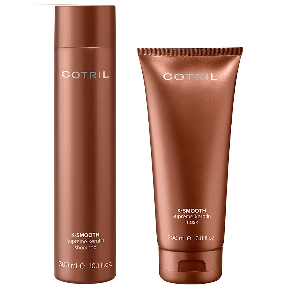 Benefits: K-Smooth Keratin Preserver Shampoo is specially created to prolong the effects and benefits of the Creative Walk Keratin smoothing treatment. It gently cleanses and, thanks to its specific formulation, hydrates and nourishes hair, leaving it shinier and softer to the touch. Exclusive formula without SLES or SALES. Benefits: K-Smooth Keratin Rehydrating Mask is the ideal rehydrating mask to provide softness and hydration to hair. It helps prolong the effects of the Creative Walk Keratin treatment. Jojoba oil provides hydration and protection for soft, healthy, and shiny hair. Directions: K-Smooth Keratin Preserver Shampoo: 1. Apply to wet scalp and massage until a rich lather forms. 2. Rinse thoroughly and repeat if necessary. K-Smooth Keratin Rehydrating Mask: 1. Distribute the product through wet hair. 2. Leave on for 5 to 10 minutes and rinse thoroughly. 3. Ideal for at-home maintenance after treatment. INSTRUCTIONS FOR USE 1. Apply Cotril K-Smooth Keratin Preserver Shampoo to wet scalp and massage until a rich lather forms. 2. Rinse thoroughly and repeat if necessary. 3. Apply Cotril K-Smooth Keratin Rehydration Mask to wet hair. 4. Leave on for 5 to 10 minutes and rinse thoroughly.