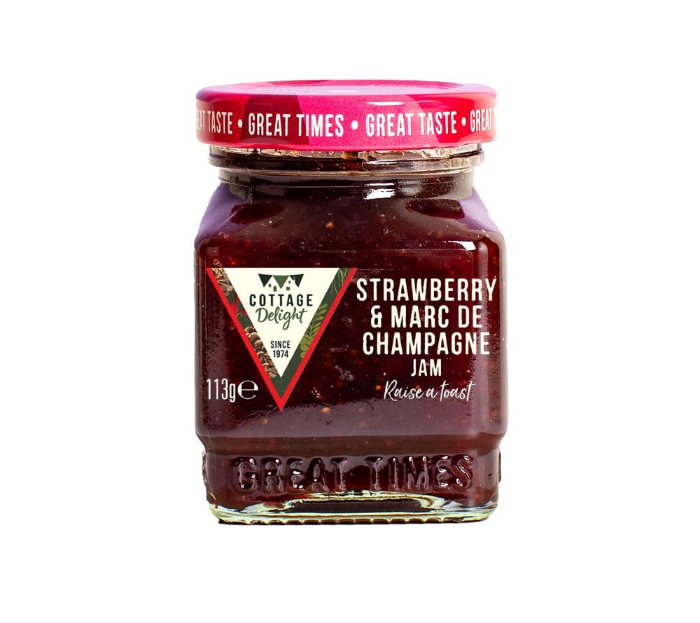 Cottage Delight Strawberry Marc de Champagne Jam is a luxurious spread that adds an elegant touch to classic strawberry jam. Made from sun-ripened, juicy strawberries and refined with Marc de Champagne, this jam combines fruity sweetness with a sparkling, delicate elegance. The result is an exceptional spread that elevates moments of pleasure to a new level. Traditionally produced in small batches, this jam combines the natural fruitiness of strawberries with the distinctive character of champagne. This creates a unique taste experience that is both intense and refined. Perfect for anyone looking for something special. The versatility of this strawberry jam makes it a true all-rounder. It tastes excellent on fresh bread, croissants, rolls, or scones and is a highlight for breakfast or afternoon tea. It is also suitable as a filling for tarts, cupcakes, or tarts, as an elegant accent in desserts, or as a special ingredient for creative recipes. It also releases its full aroma in yogurt or on ice cream. Cottage Delight has been known since 1974 for its fine, handcrafted products from Staffordshire, England. The brand began with handmade fudge and has grown into an international specialist in award-winning jams, chutneys, curds, and sauces. Many of its products have received the prestigious Great Taste Award, highlighting their quality and authenticity. The Strawberry and Marc de Champagne Jam is made without artificial colors or flavors and is gluten-free, vegetarian, and vegan. It is therefore suitable for both conscious food lovers and those who appreciate unique taste experiences. A jar full of fine British food: fruity, elegant, and with a touch of luxury. INGREDIENTS Strawberries, sugar, firming agents: fruit pectin, Marc de Champagne (3 ), acidifier: citric acid, concentrated lemon juice MANUFACTURER'S DETAILS American Heritage GmbH Co. KG, Martinipark, Building C1, Provinostraße 71, 86172 Augsburg, Germany See moreCottage Delight Strawberry Marc de Champagne Jam, confiture de fraises de luxe avec marc de champagne noble, pâte à tartiner fruitée et confiture gourmet en verre, spécialité britannique Fraise et Marc de Champagne Jam 113 gDESCRIPTION DU PRODUIT DESCRIPTION DU PRODUIT La confiture Cottage Delight Strawberry Marc de Champagne est une pâte à tartiner luxueuse qui ajoute une touche élégante à la confiture de fraises classique. Fabriquée à partir de fraises juteuses mûries au soleil et raffinée avec du Marc de Champagne, cette confiture allie douceur fruitée à une élégance pétillante et fine. Le résultat est une pâte à tartiner exceptionnelle qui élève les moments de plaisir à un nouveau niveau. Traditionnellement produite en petits lots, cette confiture combine le fruité naturel de la fraise avec le caractère particulier du champagne. Cela crée une expérience gustative unique, aussi intense que raffinée. Parfait pour tous ceux qui recherchent quelque chose de spécial. La polyvalence de cette confiture de fraises en fait un véritable objet polyvalent. Elle a un goût excellent sur du pain frais, des croissants, des petits pains ou des scones et est un point fort pour le petit-déjeuner ou le thé après-noon. En outre, elle convient comme garniture pour tartes, cupcakes ou tartelettes, comme accent élégant dans les desserts ou comme ingrédient spécial pour des recettes créatives. Elle déploie également tout son arôme dans le yaourt ou sur la glace. Cottage Delight est connue depuis 1974 pour ses produits artisanaux fins du Staffordshire, en Angleterre. La marque a commencé avec du fudge fait à la main et est devenue un spécialiste international des jams, chutneys, curds et sauces primés. De nombreux produits ont reçu le prestigieux Great Taste Award, ce qui souligne leur qualité et leur authenticité. La confiture aux fraises et au Marc de Champagne est fabriquée sans colorants ni arômes artificiels et est sans gluten, végétarienne et végétalienne. Elle convient donc aussi bien aux gourmets conscients qu'aux gourmets qui apprécient les expériences gustatives particulières. Un pot plein d'aliments fins britanniques : fruité, noble et avec une touche de luxe. INGRÉDIENTS fraises, sucre, affermissants : pectine de fruits, Marc de Champagne (3 ), acidifiant : acide citrique, jus de citron concentré COORDONNÉES DU FABRICANT American Heritage GmbH Co. KG, Martinipark, bâtiment C1 Provinostraße 71, 86172, Augsbourg, DE Voir plus