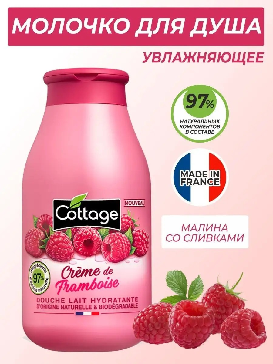 Cottage Молочко для душа увлажняющее Малина со сливками, 250мл
