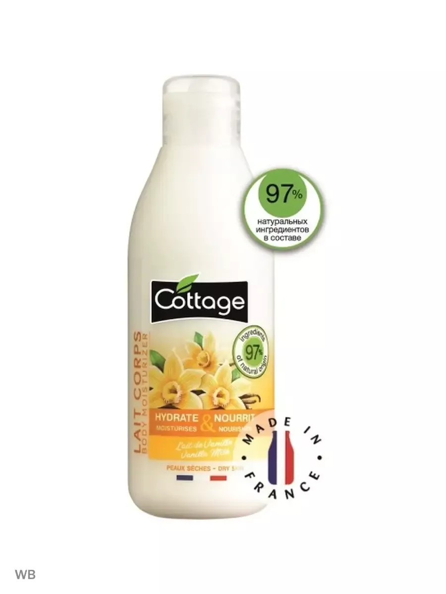 COTTAGE Молочко для тела ваниль Body Moisturizer – Vanilla Milk - Dry Skin, 200 мл.Увлажняющее молочко для тела ваниль разработано специально для питания сухой кожи. Его насыщенная увлажняющими и питательными компонентами формула обеспечивает интенсивное увлажнение и питание сухой кожи, восстанавливает ее эластичности и дарит ощущение комфорта. Легкая текстура быстро впитывается, не оставляя жирной пленки, и дарит чувственное наслаждение с изысканным ароматом ванили. Результаты клинических испытаний: 100% пользователей с сухой кожей сочли формулу питательной и восстанавливающей. 100% пользователей с сухой кожей отметили, что продукт питает, восстанавливает, смягчает и увлажняет кожу. Одобрено дерматологами. 97% натуральных ингредиентов в составе.=