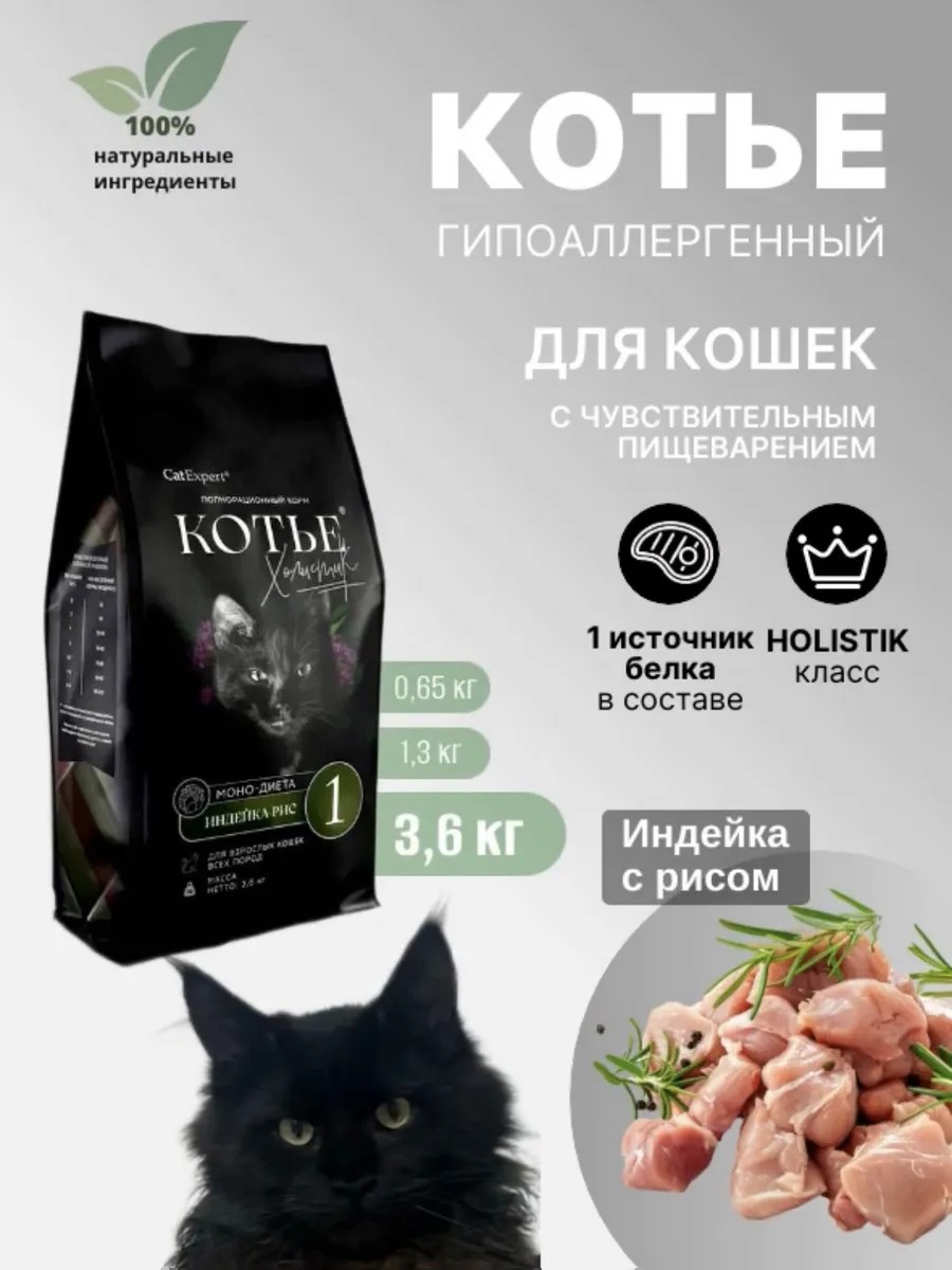 Котье Сухой корм для кошек Котье, гипоаллергенный, индейка, 3,6 кг