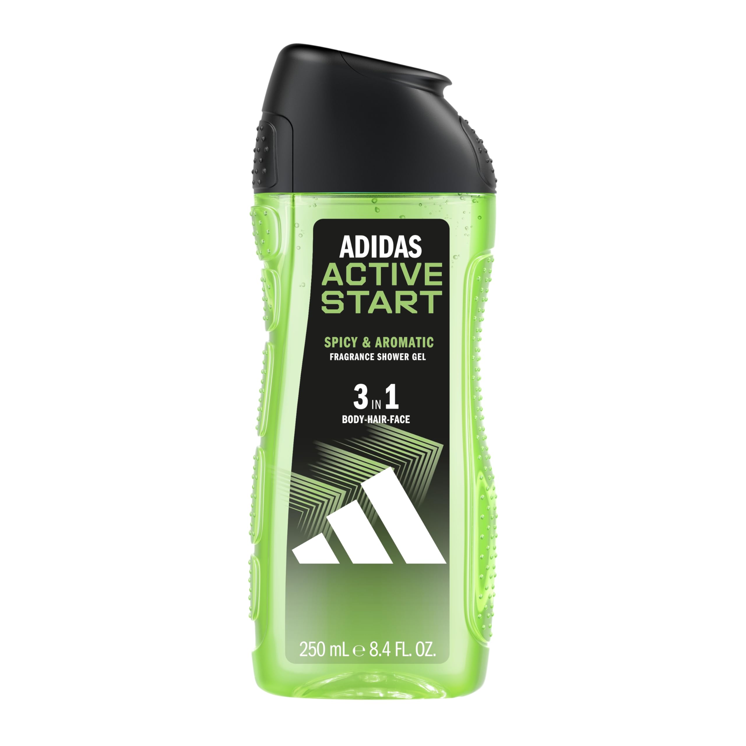 The adidas Active Start 3-in-1 shower gel is an invigorating shower gel for him and provides optimal care for skin and hair thanks to soft, vegan ingredients.Sustainable: vegan ingredients and packaging made from almost 100 recycled material. The Active Start shower gel has a particularly caring effect on dry and sensitive skin thanks to its vegan formula. Refreshing spicy fragrance notes are perfectly rounded off by an aromatic combination of cedar wood and musk. Moisturizing 3-in-1 formula for body, hair and face. The adidas Active Start shower gel stimulates and provides an energy boost.adidas 3-in-1 Active Start douchegel voor hem, met aromatisch-kruidige geur, 250 ml De adidas Active Start 3-in-1 douchegel is een verkwikkende douchegel voor hem en verzorgt dankzij zachte, veganistische ingrediënten optimaal huid en haar.Duurzaam: veganistische ingrediënten en een verpakking die voor bijna 100 uit gerecycled materiaal bestaat. De Active Start douchegel werkt bijzonder verzorgend op droge en gevoelige huid dankzij de veganistische formule. Verfrissende kruidige geurnoten worden perfect afgerond door een aromatische combinatie van cederhout en muskus. Vochtinbrengende 3-in-1 formule voor lichaam, haar en gezicht. De adidas Active Start douchegel stimuleert en zorgt voor een energieboost.