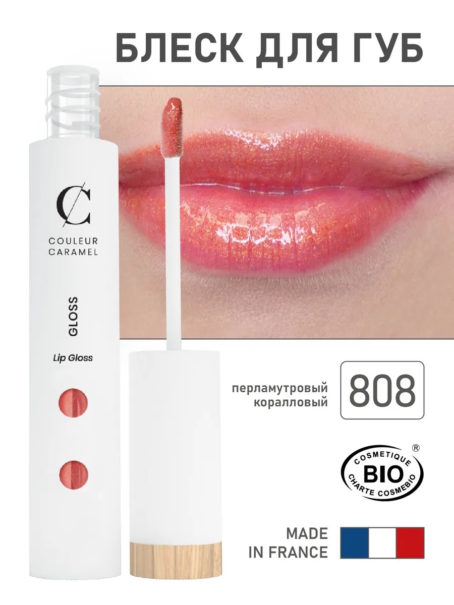 Couleur Caramel Натуральный блеск для губ 808 Перламутровый коралловый, 6 мл
