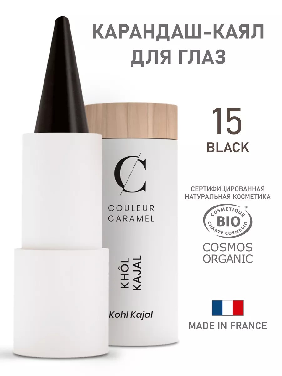 COULEUR CARAMEL Натуральный мягкий карандаш для глаз -каял 15 Черный, 3,5 гр