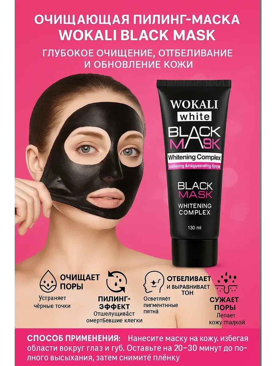 Очищающая пилинг-маска WOKALI Black Mask — глубокое очищение, отбеливание и обновление кожи в одном флаконе!