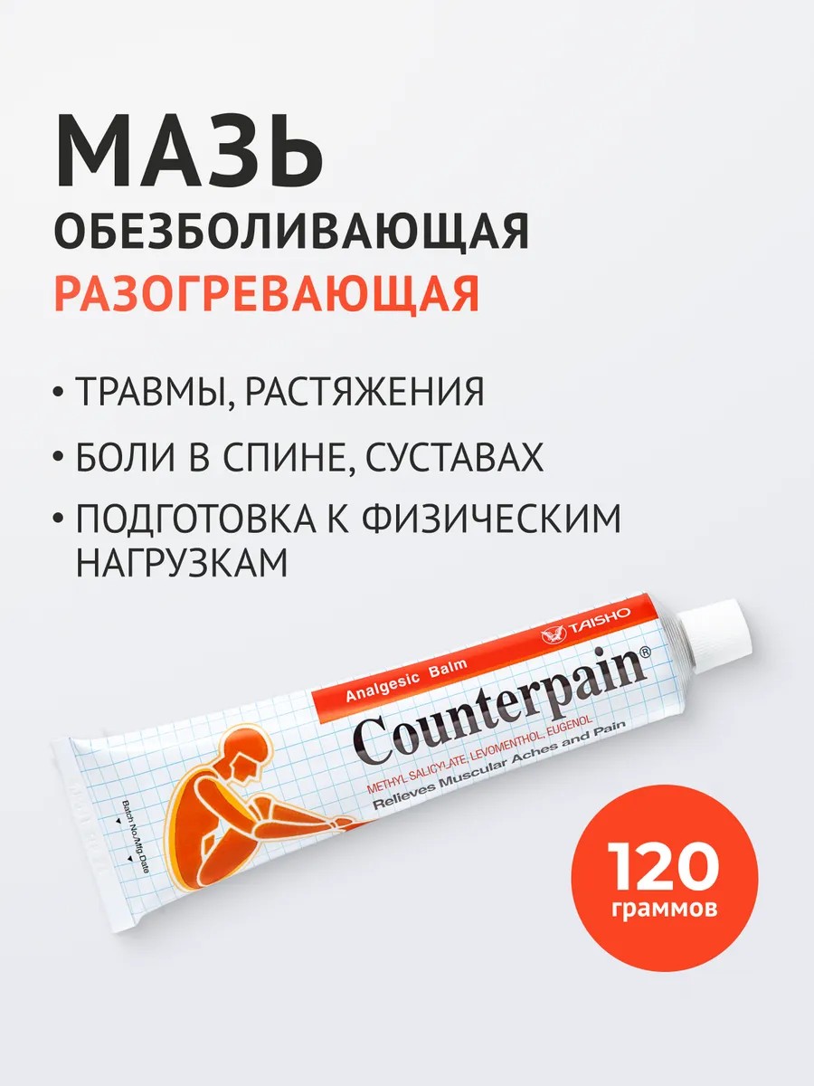 Counterpain Analgesic Balm relieves pain from injuries and musculoskeletal conditions. It reduces swelling and inflammation in muscles, joints, and the back. It improves circulation and increases mobility, which is especially important for those aged 35-40 and older. This product has a pronounced analgesic effect. It is used for bruises, sprains, ligament tears, dislocations, etc. It is also used for bone diseases and their prevention (neuralgia, myalgia, rheumatism, radiculitis, gout, osteochondrosis, pinched nerves, etc.). The balm is based on traditional recipes and modern technology. After some time after applying the cream, the warming effect gives way to a cooling one. This quickly prepares the body for training, removes lactic acid buildup, and also allows for easy recovery after heavy loads and overexertion. It has a therapeutic effect and is excellent for massage. Reduces fatigue and heaviness in the legs and arms, and combats swelling associated with varicose veins. Suitable for all skin types. Absorbs completely, like a gel, leaving no residue. It's a useful addition to your medicine cabinet. Produced at the Thai branch of the Japanese pharmaceutical company Taisho Pharmaceutical. For directions for use and precautions, see the product infographic. At our Thaiplace store, you purchase 100% original products from Thailand. The images in the product card were created using Freepik. This is not a medicinal product.