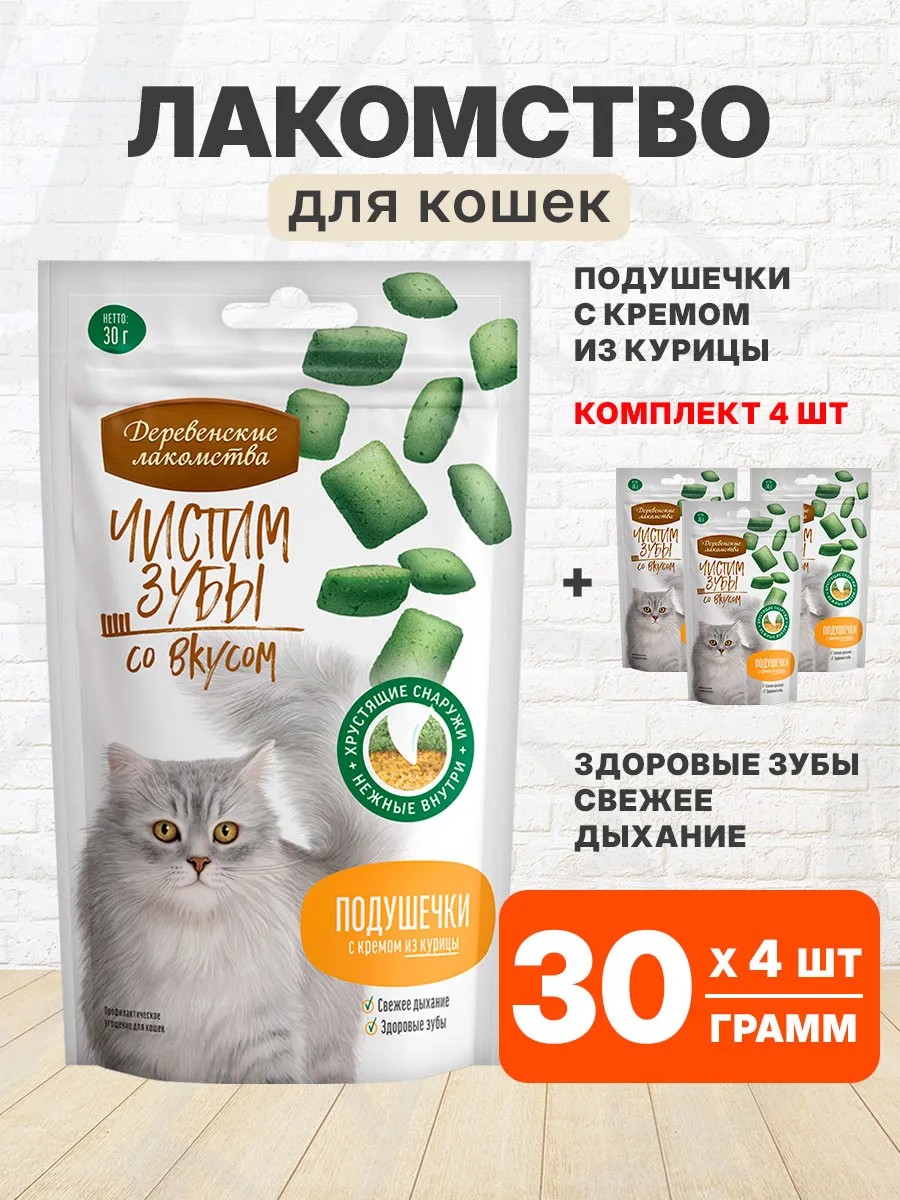 | Комплектация | лакомство для кошек подушечки с кремом из курицы 30 гр 4 шт |