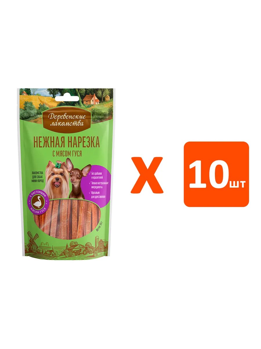 Деревенские лакомства Лакомство нарезка гуся собак маленьких пород нежная 55г 10шт