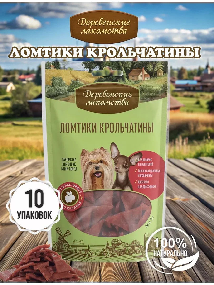 Деревенские лакомства Лакомство для Собак Мини-пород,Ломтики Крольчатины,55г.*10шт