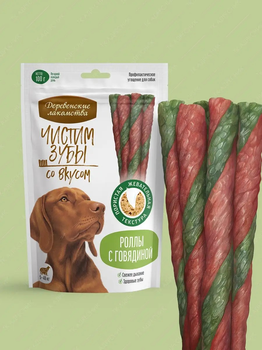 Специальная профилактическая серия «Деревенские лакомства – Чистим зубы» разработана для здоровья полости пасти домашних питомцев.