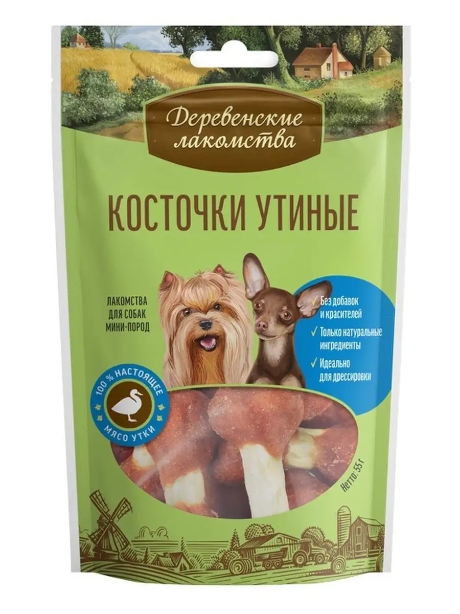 Деревенские лакомства Лакомство для собак мелких пород косточки утиные, 55 гр