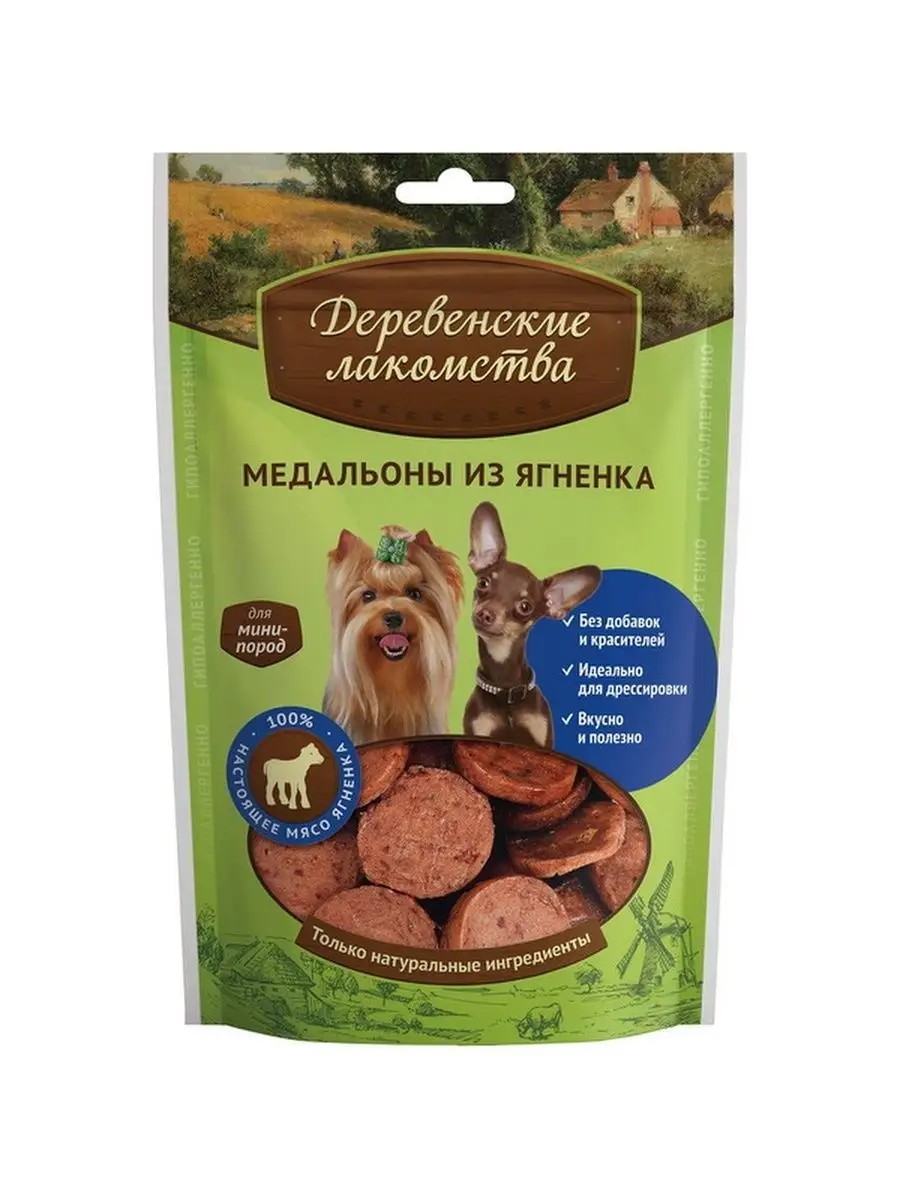 Деревенские лакомства Лакомство для собак мелких пород медальоны из ягненка, 55 гр