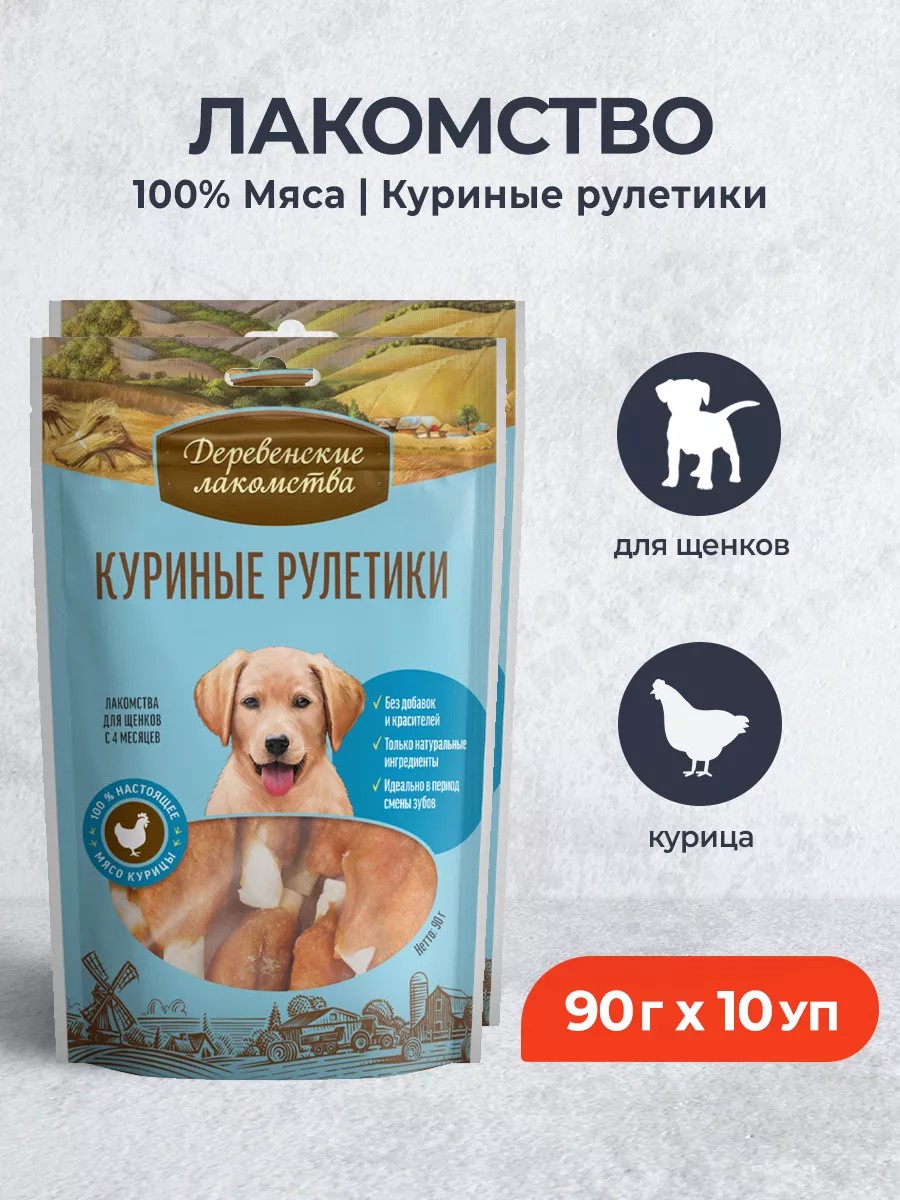 Деревенские лакомства лакомство для щенков 100% Мяса рулетики курица, 90 г х 10 уп