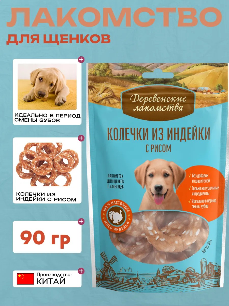Деревенские лакомства Лакомство для щенков колечки из индейки 85г