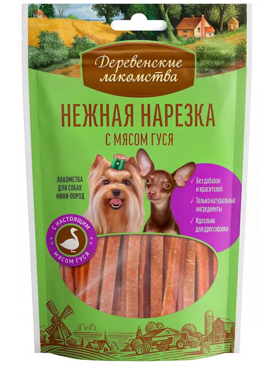 Деревенские лакомства Лакомство для малых пород, нежная нарезка с мясом гуся, 55 г