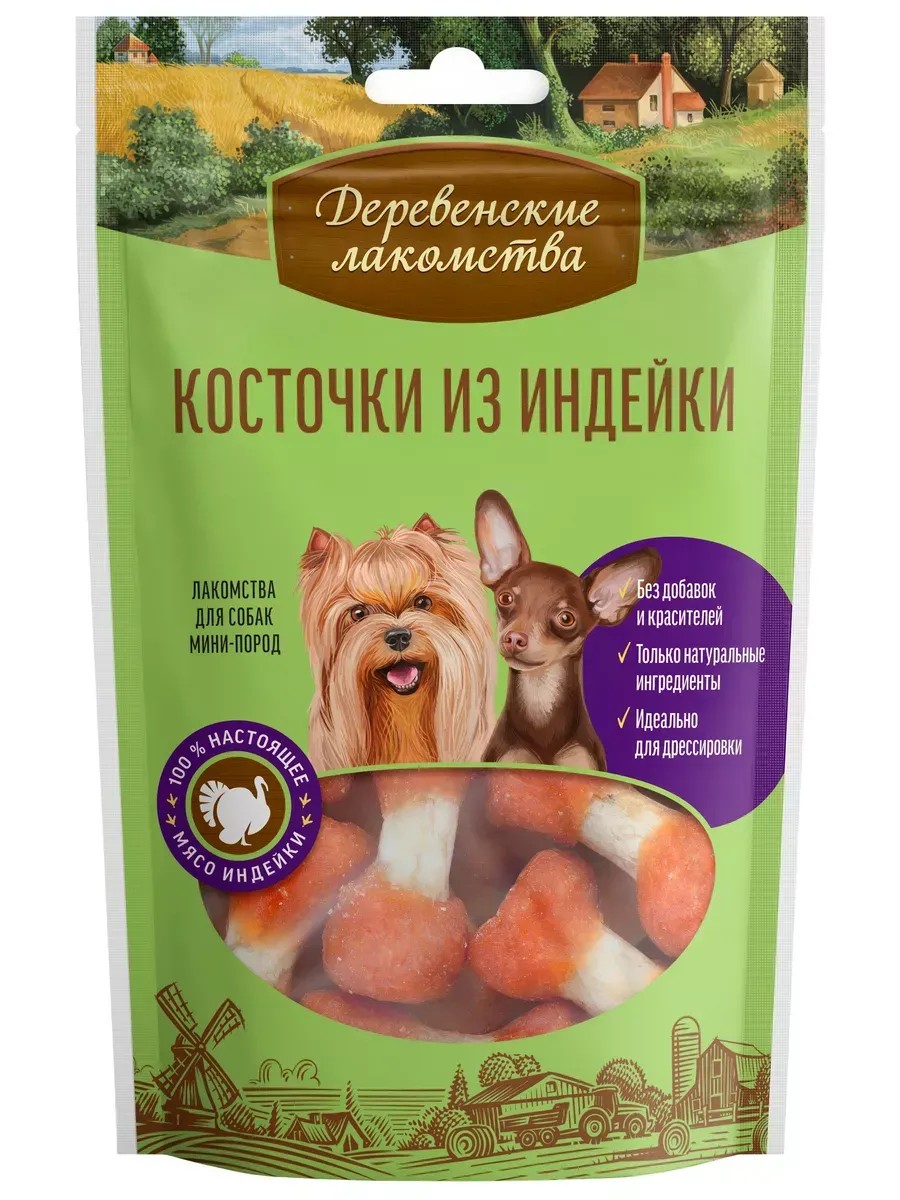 Лакомство Деревенские лакомства для малых пород, косточки из индейки, 55 г. Косточки из индейки для мини-пород.