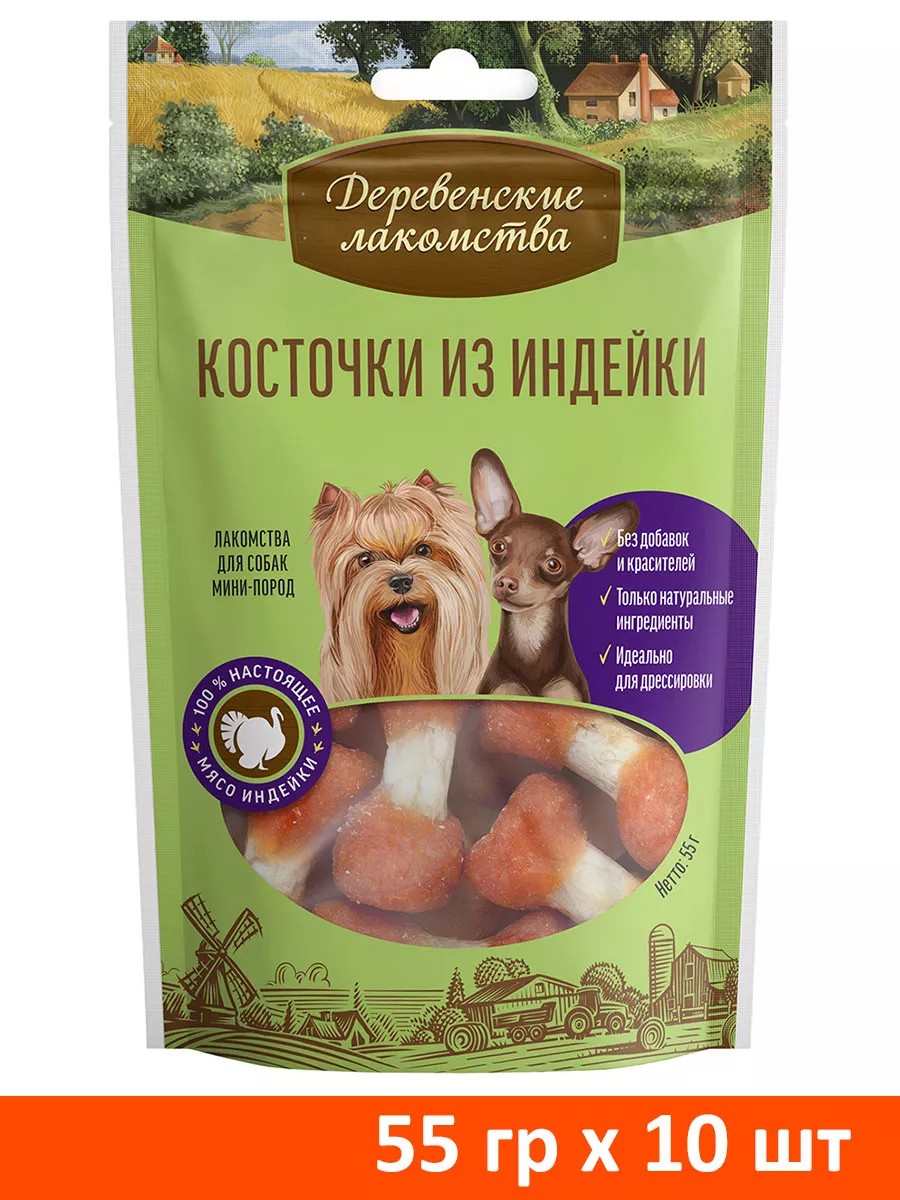 Деревенские лакомства Лакомство косточки собак маленьких пород индейка 55 г 10 шт