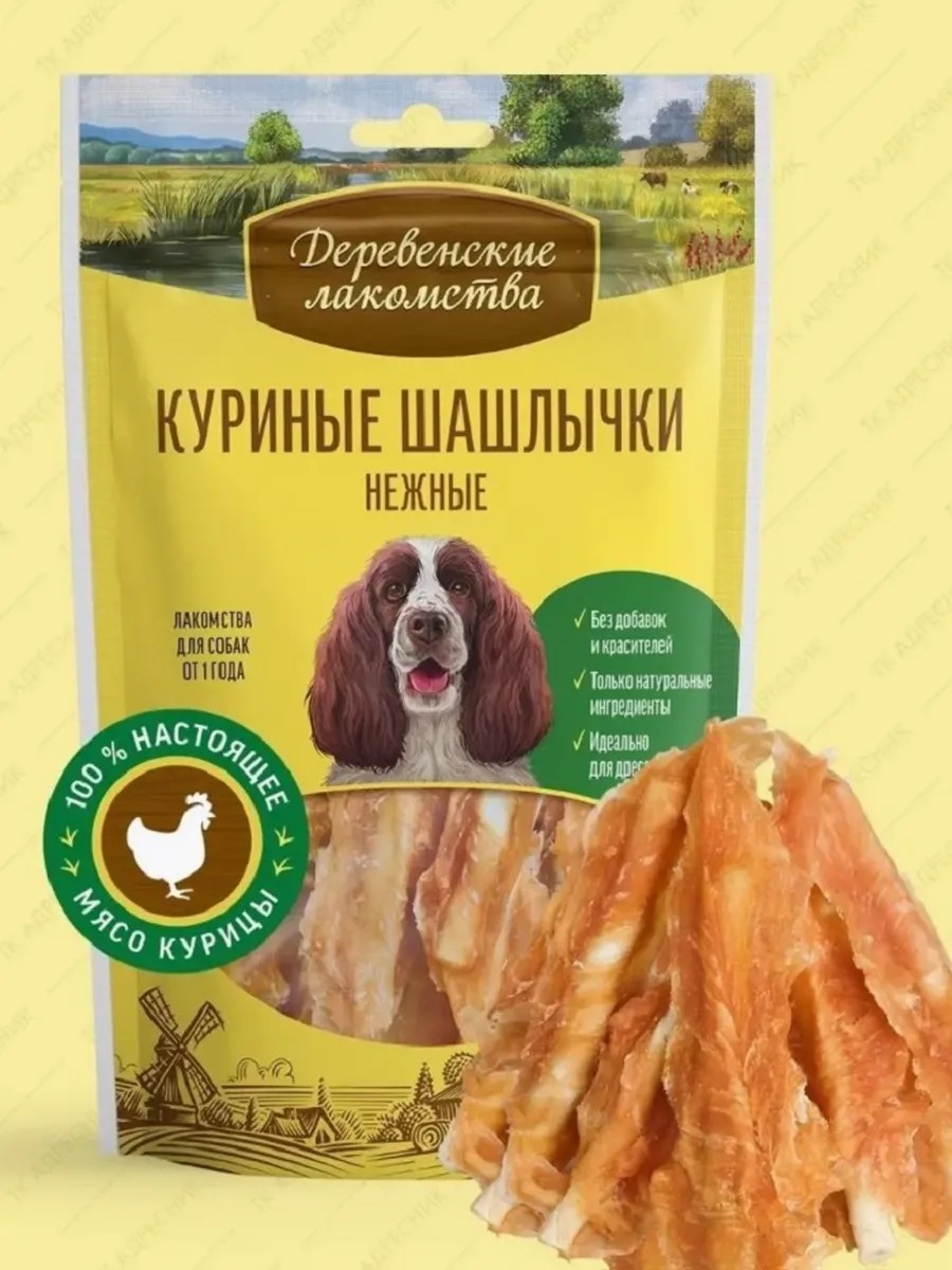 Идеальные для дрессуры и поощрения "Деревенские лакомства" отбираются и обрабатываются вручную и могут служить эталоном лакомств для домашних животных. В любое время года и в любую погоду ваша собака может отведать великолепные шашлычки из филе куриных грудок на жевательной шпажке.