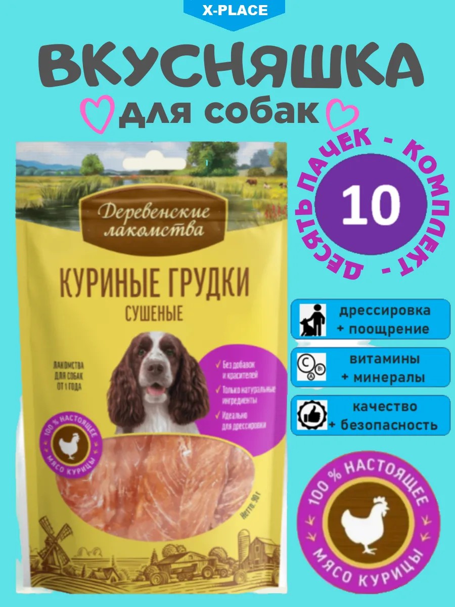 | Комплектация | Лакомство для собак любой породы 10 упаковок по 90 грамм |