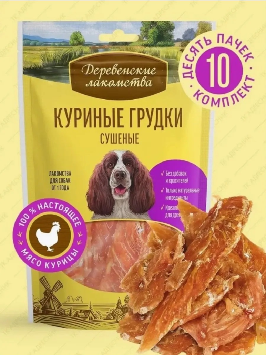 Деревенские лакомства Лакомство для взрослых собак Куриные грудки сушеные, 10шт