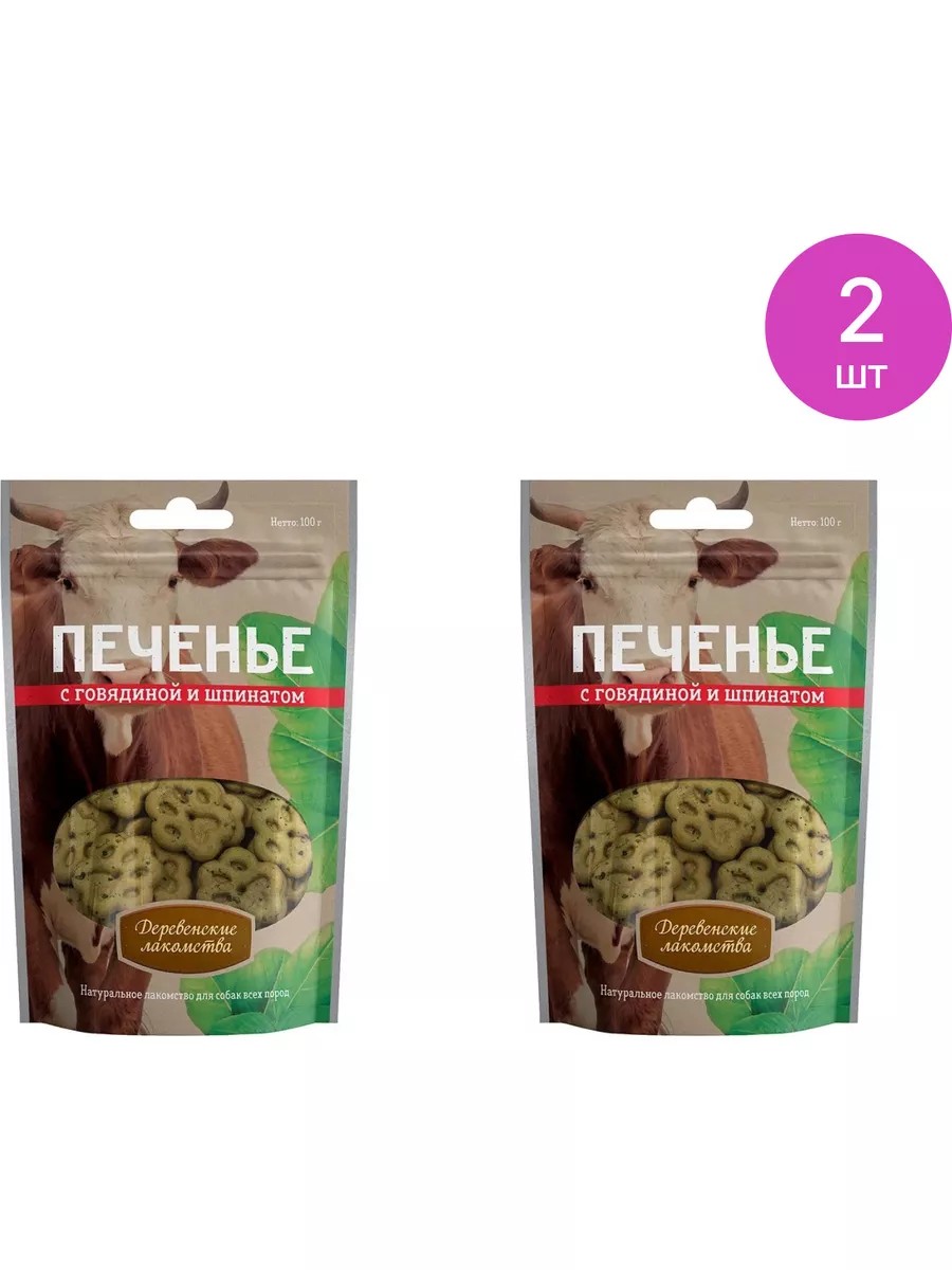 Деревенские лакомства Лакомство для собак печенье говядина и шпинат 100г, 2 шт